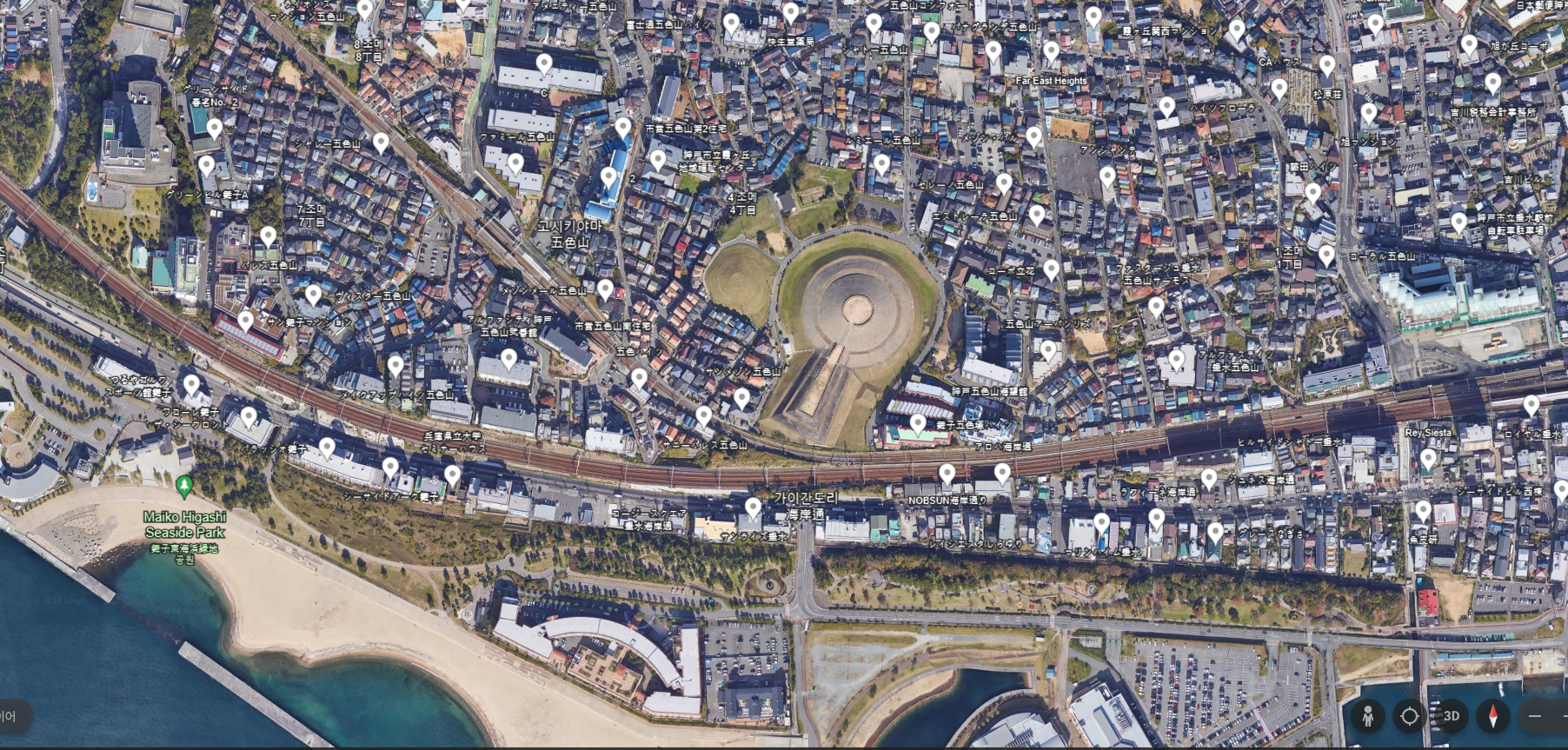 이 무덤을 논할 때 그 장소성을 뺄 수 없다. 다시 말해 명석해협明石海峡을 한 눈에 조망하는 바닷가에 자리잡았으니 그 맞은편 해안에 담로도淡路島를 조망한다.