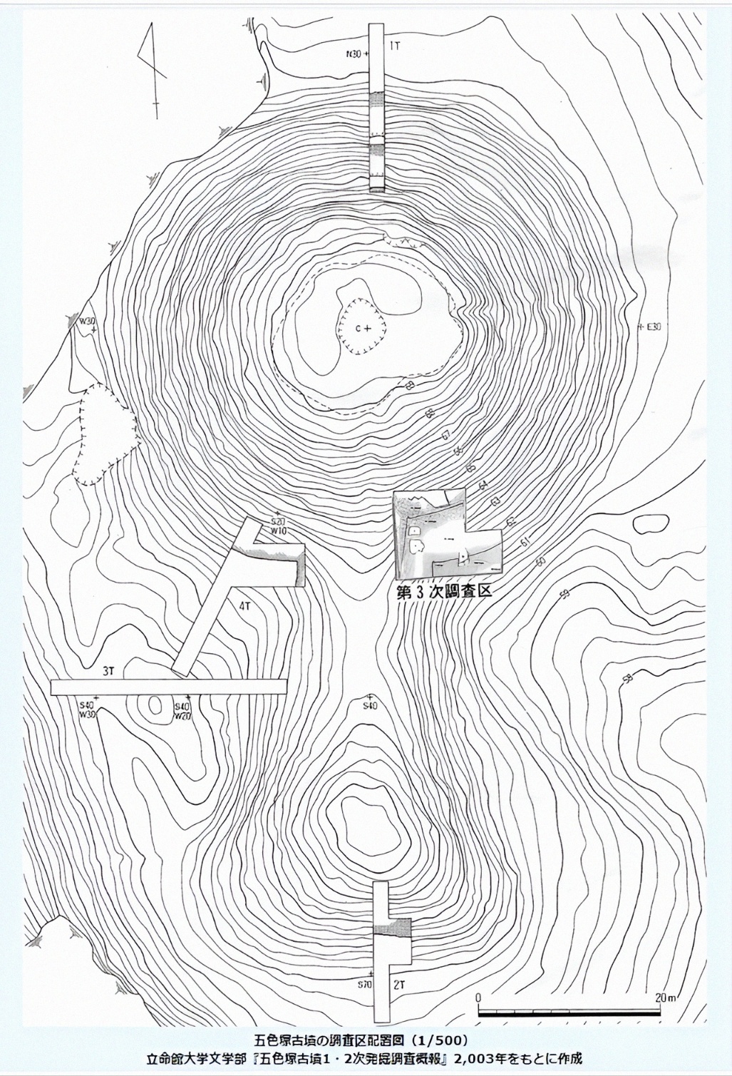 각단에서 식륜열埴輪列(추계 약 320본)이 검출되나 오색총과는 달리 즙석은 하지 않았다.