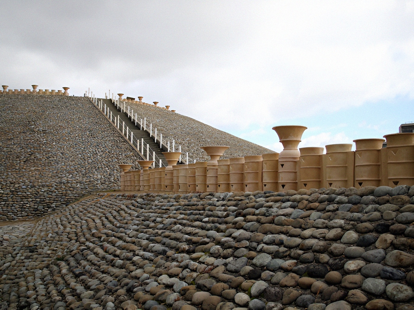 이곳 식륜埴輪은 총 2천200본本으로 추정되며 즙석은 추계 223만개, 2천784t이다. 상단과 중단 즙석은 담로도淡路島에서 가져왔음은 판명됐다.