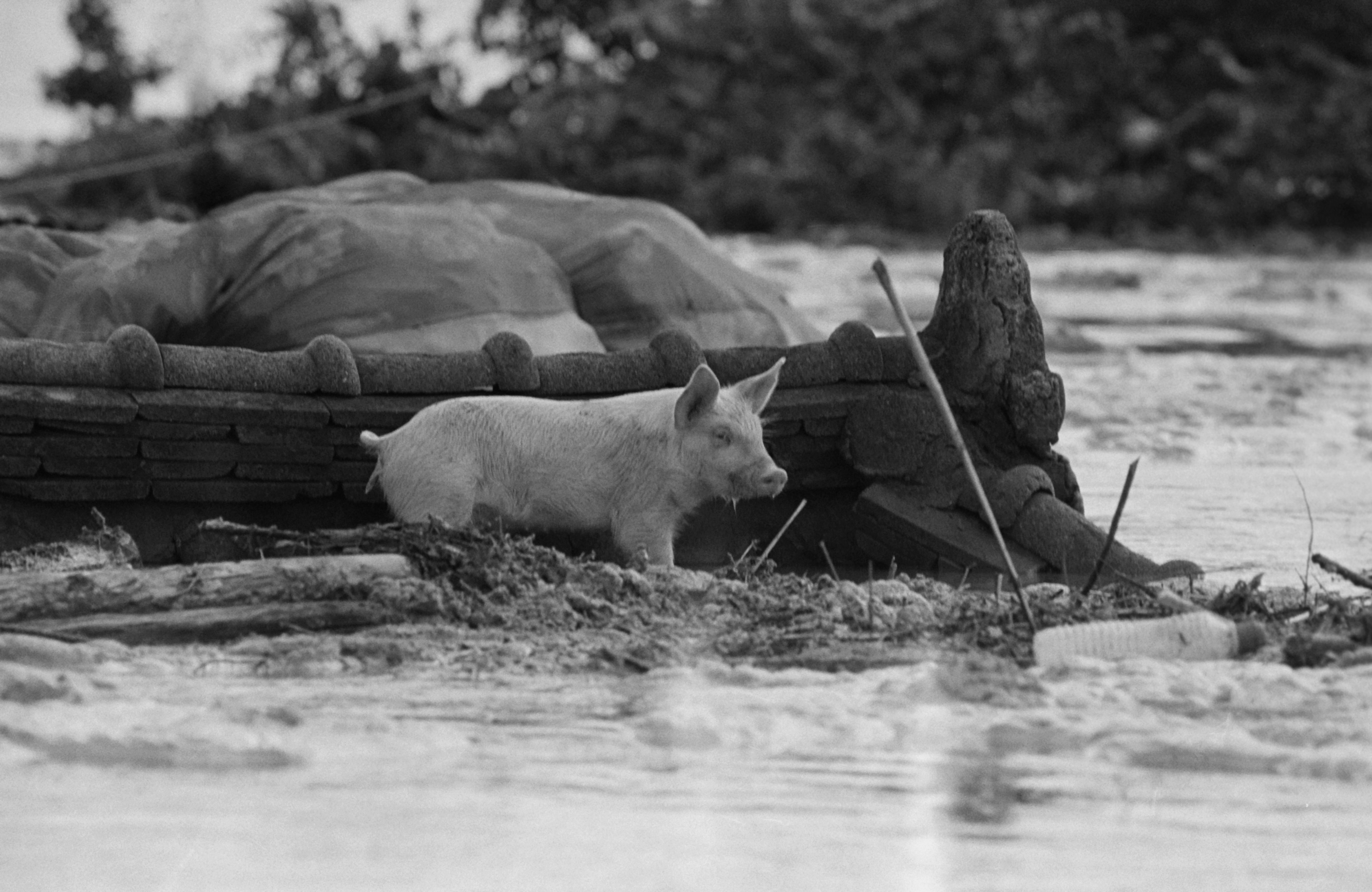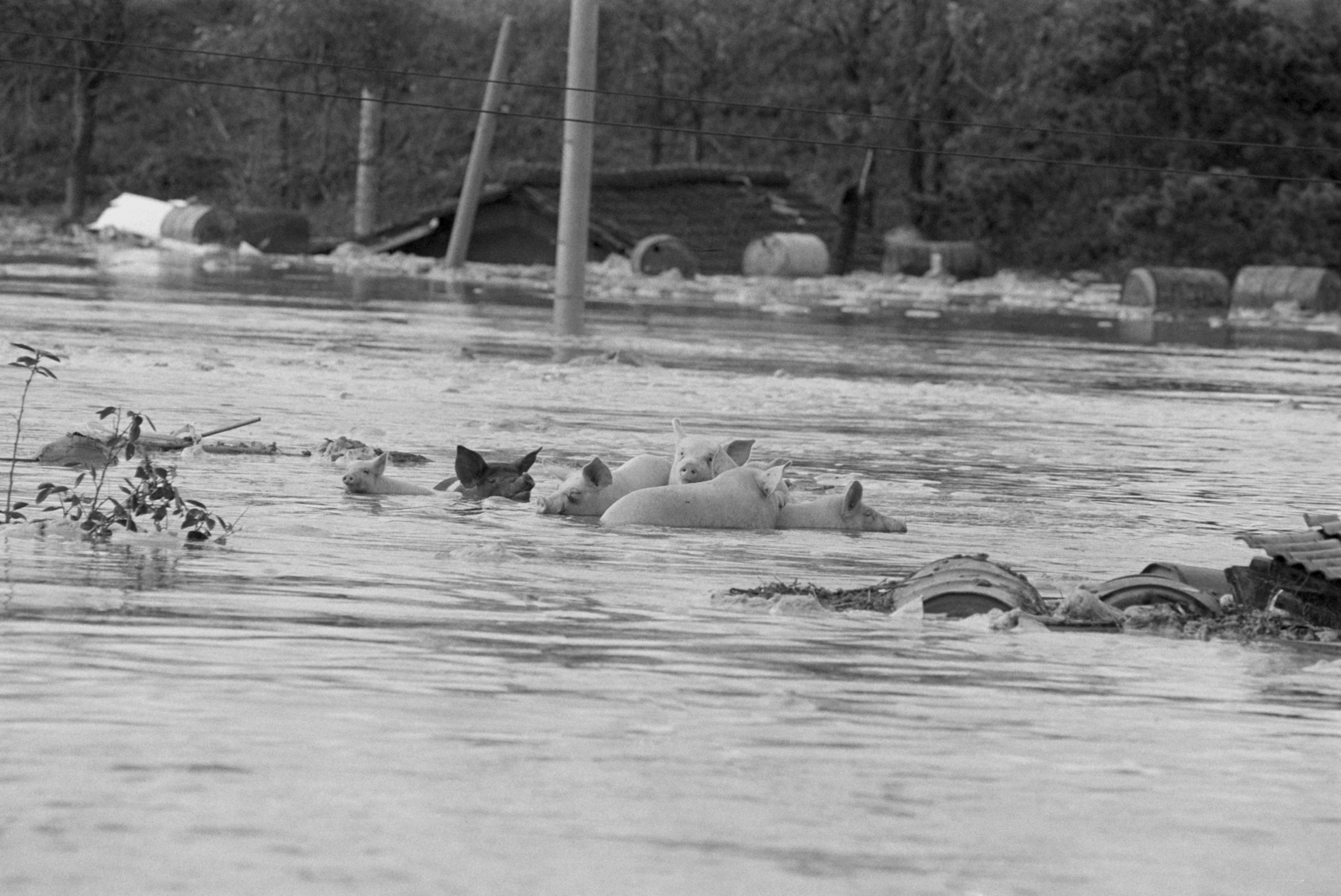 태풍이 동반하는 저런 물난리에 요즘은 아주 드문 일이 되었지만, 우리한테 익숙한 풍경은 실은 돼지가 떠내려가는 장면이었다. 한데 미국은 역시 급이 다른지, 저 큰 소를 나무에다가 대롱대롱 매달았단다.