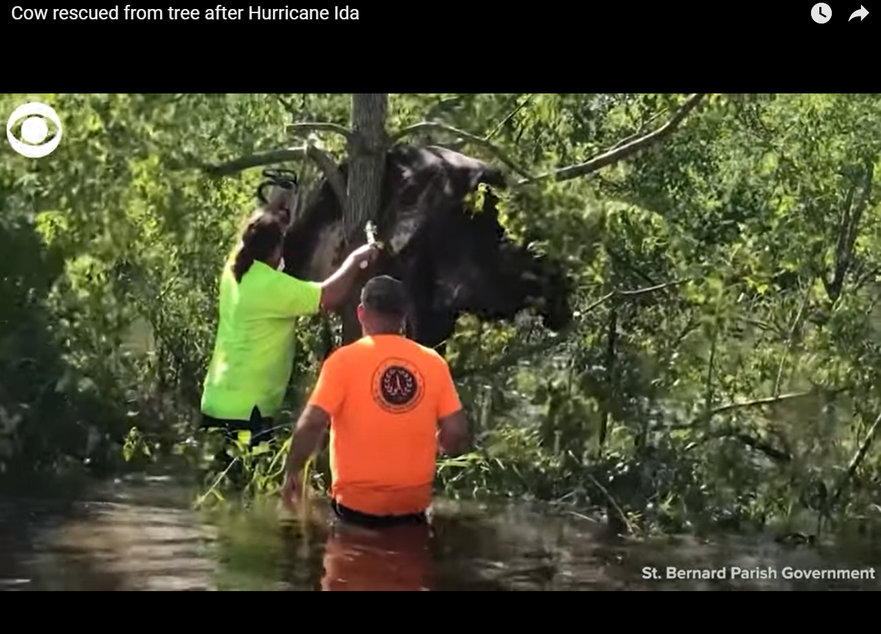 Cow rescued from tree after Hurricane Ida