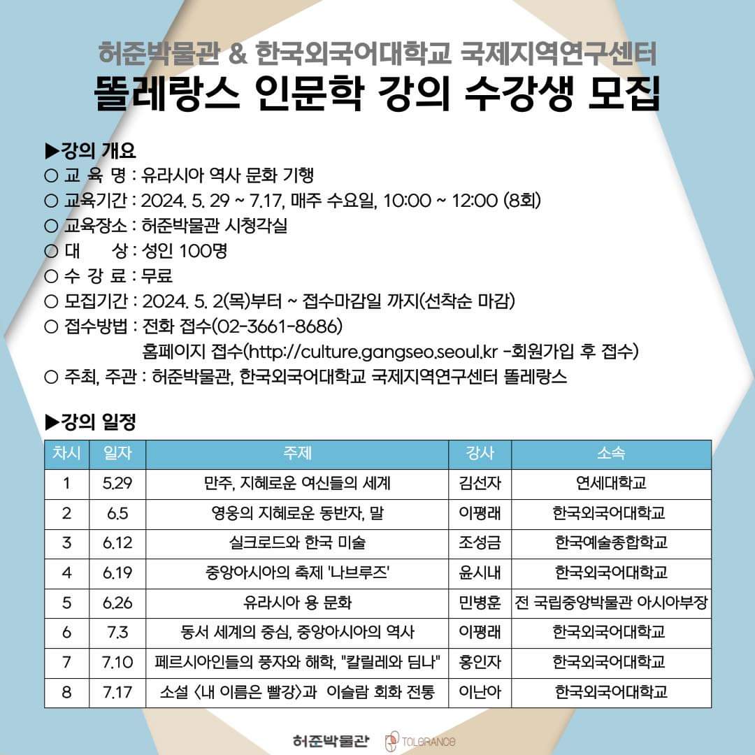 #허준박물관 #박물관교육 #성인교육 #성인강좌 #성인강의 #박물관 #미술관 #교육 #교육프로그램 #똘레랑스 #한국외국어대학교 #한국외대 #대학강의 #인문학 #유라시아 #역사 #문화 #역사강좌 #문화강좌