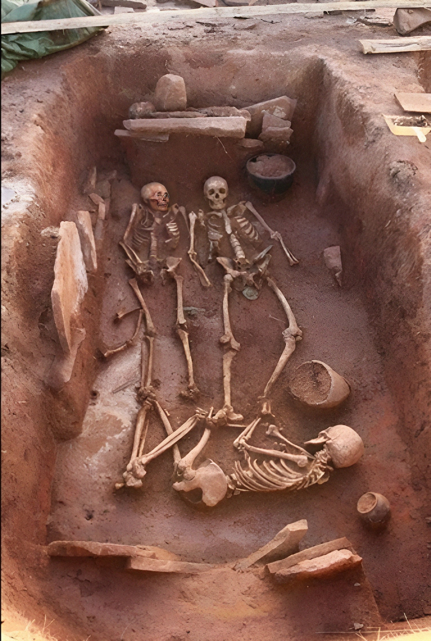 이르기를 같은 움무덤에선 이들 부부와 함께 유해가 흩어진 아기 인골, 그리고 발치 쪽에선 웅크린 자세의 60세 여성 뼈가 드러났다 면서 하인으로 추정한댄다.