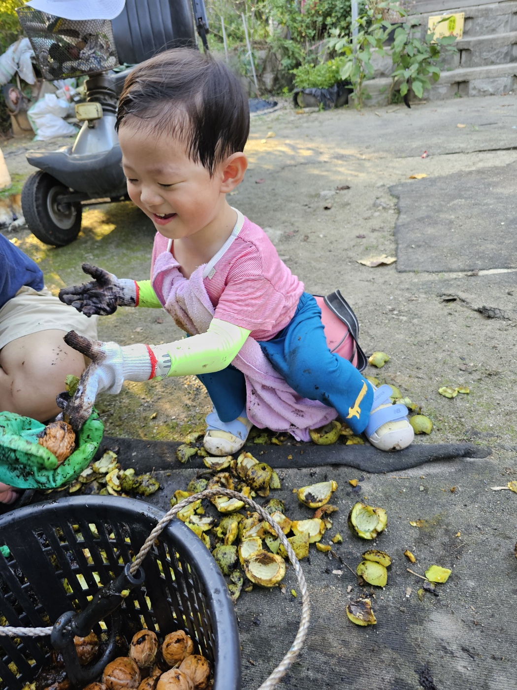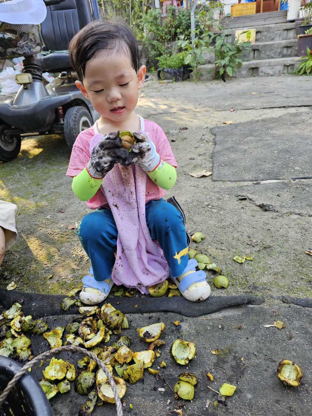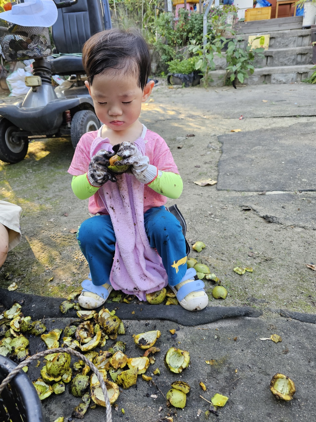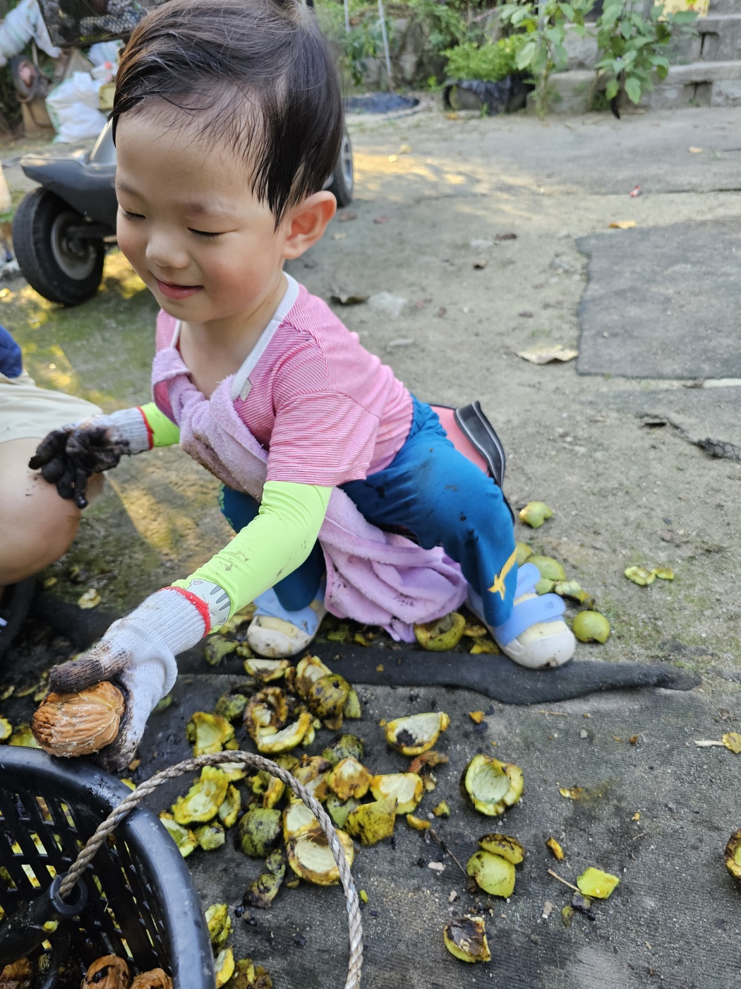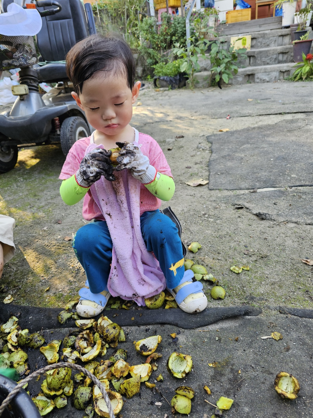 한 푼 벌어보겠다고 34개월 된 놈이 손톱 까맣게 물들 때까지 호두를 깠다.