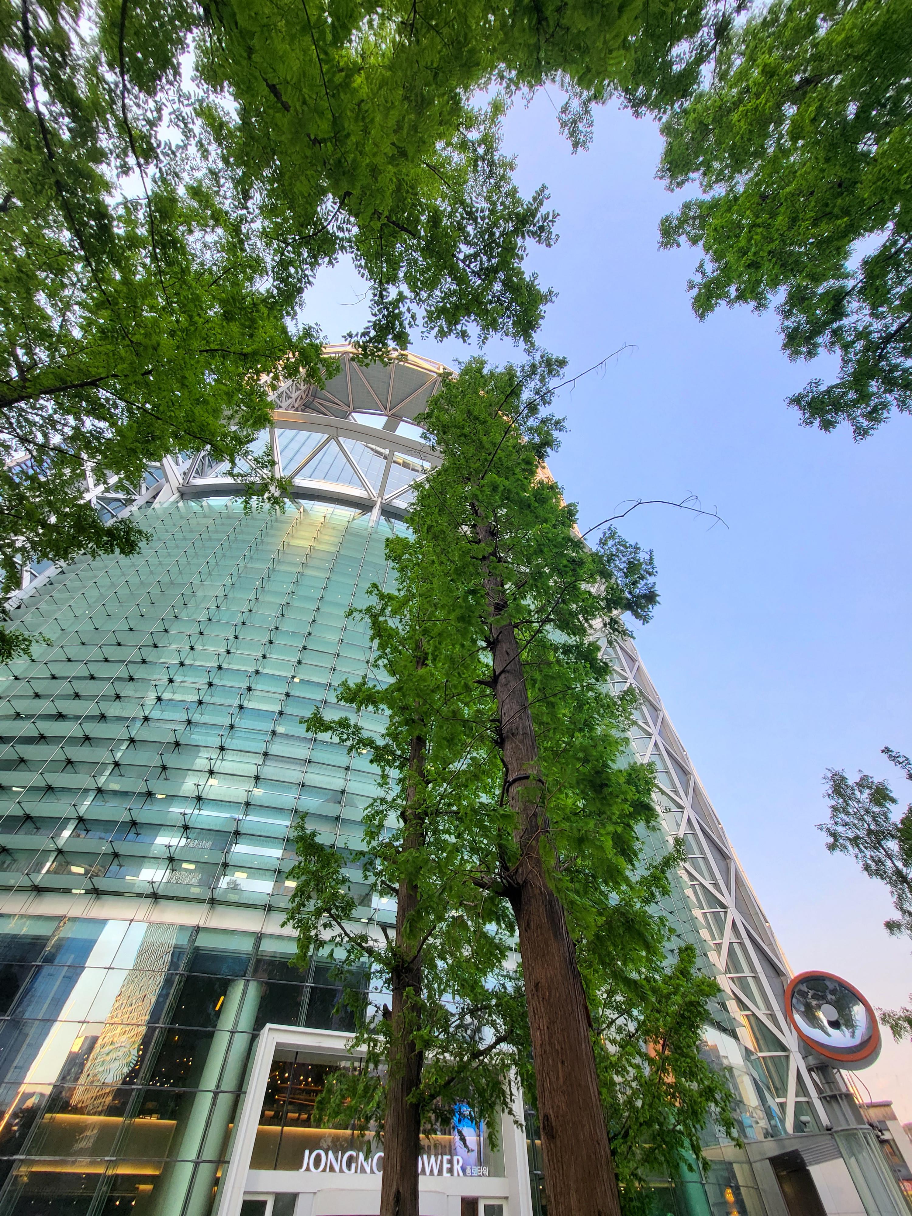 청계천 이팝 구경 가는 길에 새삼 올려다 봤다. 연녹이 짙음을 더해간다.