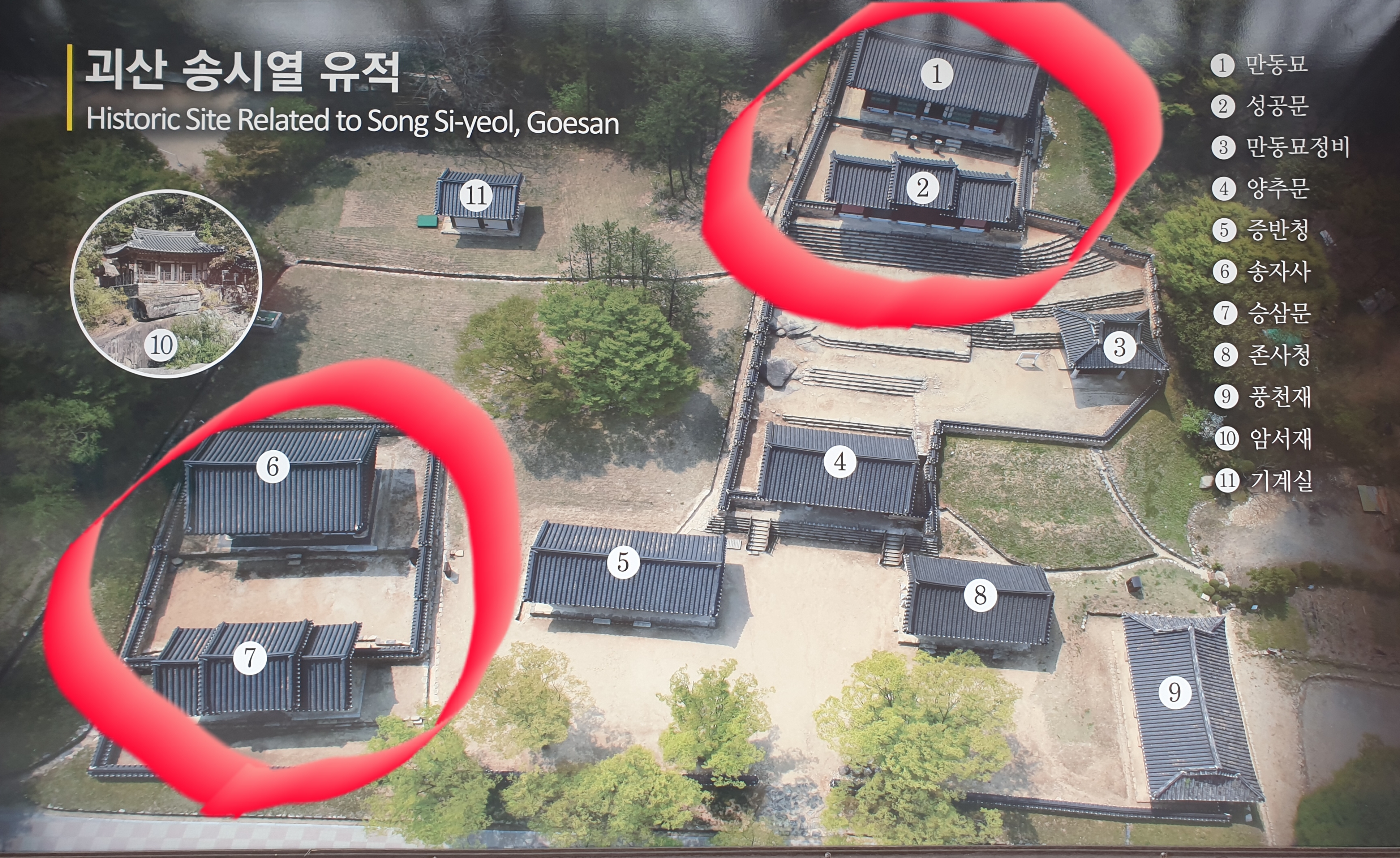 불교의 조사가 부처님을 피해 후미진 다른 곳으로 갔듯이 송자 역시 만동묘에 모신 신종 의종 두 황제를 피해 한쪽 후미진 곳으로 갈수밖에 없었다.