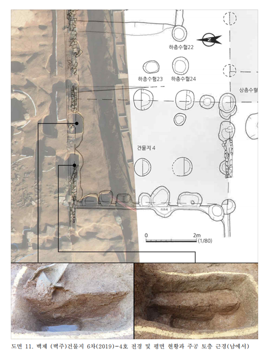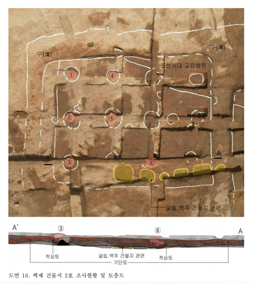 건물 축조방식을 살펴보면 경사면을 절토해 대지를 조성한 뒤 크게 두 단계에 걸쳐 계획적으로 건물을 세운 것으로 파악됐다. 1단계에서는 굴립주(掘立柱)와 벽주(壁柱) 건물지가 조성됐다. 굴립주는 기둥밑동을 땅속에 박에 세우는 방식이고, 벽주는 외곽에 벽을 돌린 형태로 벽 사이에 기둥을 세우는 방식을 말한다.