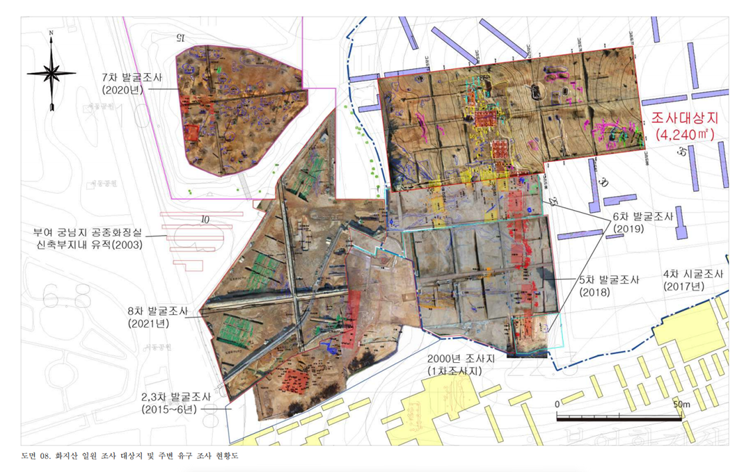 이번 조사에선 화지산 서향사면 일원에 배치된 핵심 건물터의 전체 규모와 축조 양상을 확인하는 성과를 거뒀다.