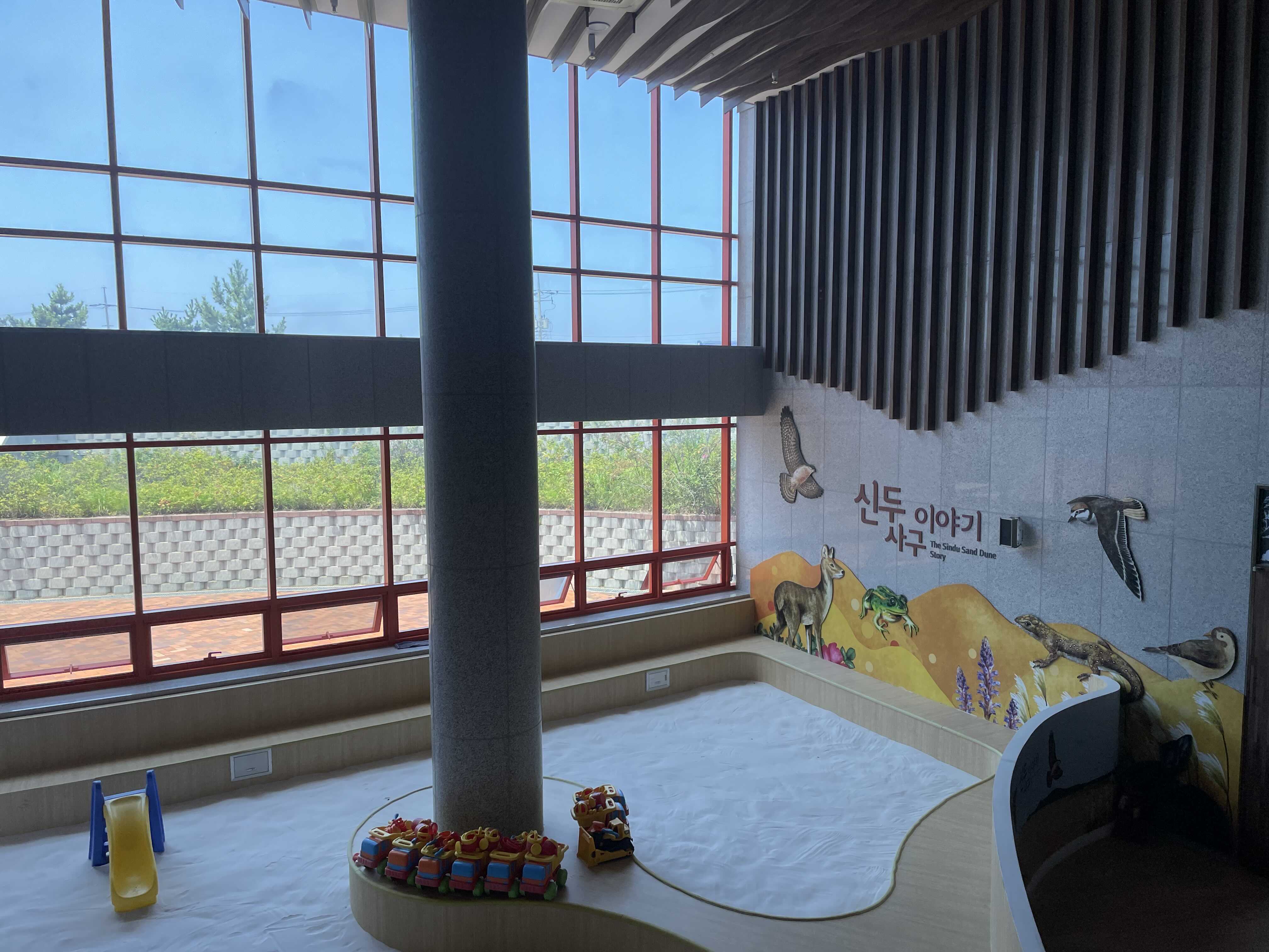 신두리 해안사구를 체험할 수 있는 모래사장입니다. 하지만 코로나로 지금은 운영하고 있지 않았습니다. 높은 천장과 벽면 가득 들어오는 햇볕이 시원시원 합니다.