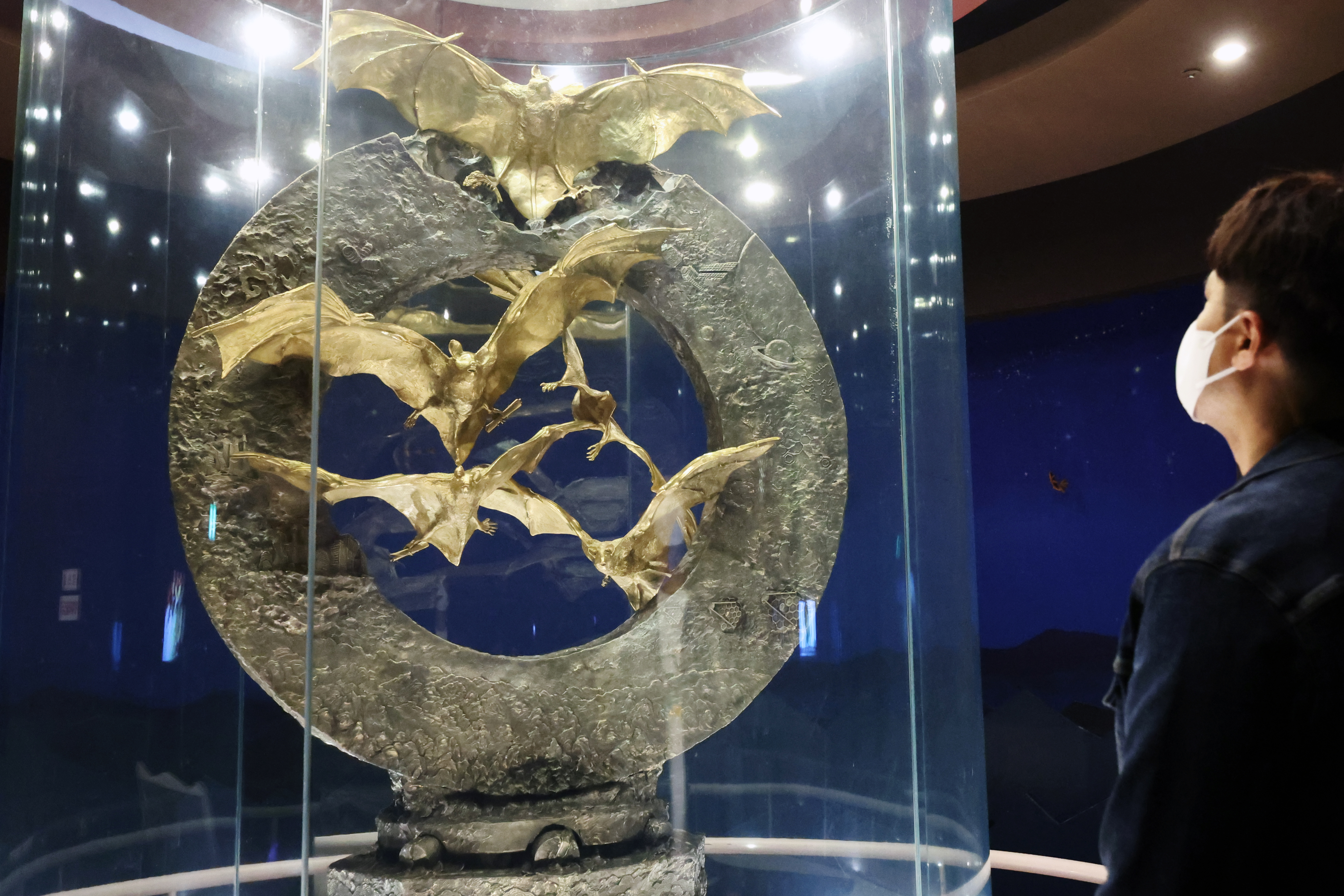 이 황금박쥐를 만드는 데 들어간 귀금속만 해도 순금 162㎏에다가 은 281㎏이라고 한다. 이걸 녹여서 가로 1.5m, 높이 2.1m 크기인 은으로 만든 원형 조형물에다가가 순금제 6마리 황금박쥐가 날갯짓하는 모습을 장착했단다.