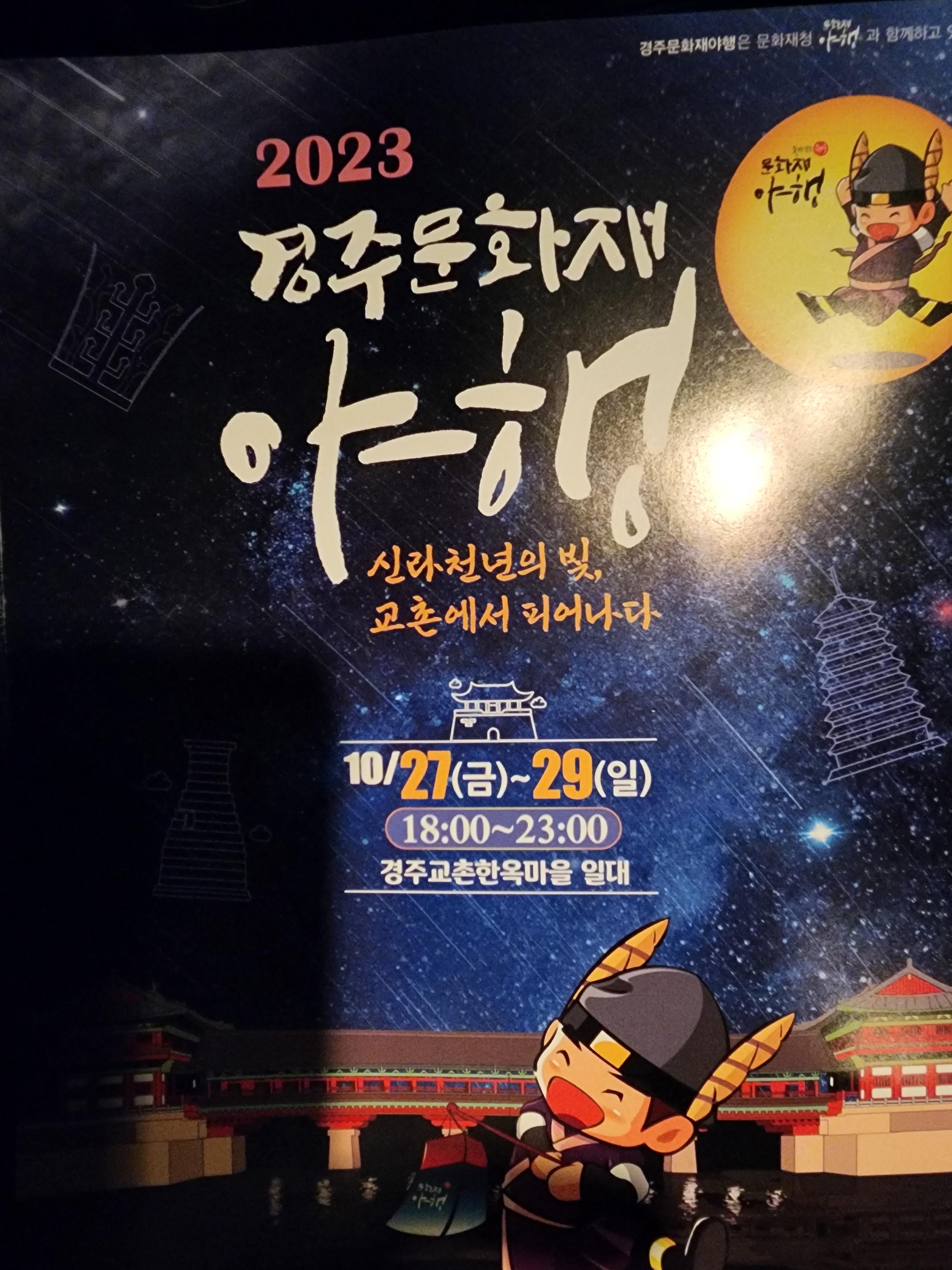 내가 정신이 없어 전화로 일정을 통보받고는 일정표에 적어둔 저 경주문화재야행은 이번 주말이었다.