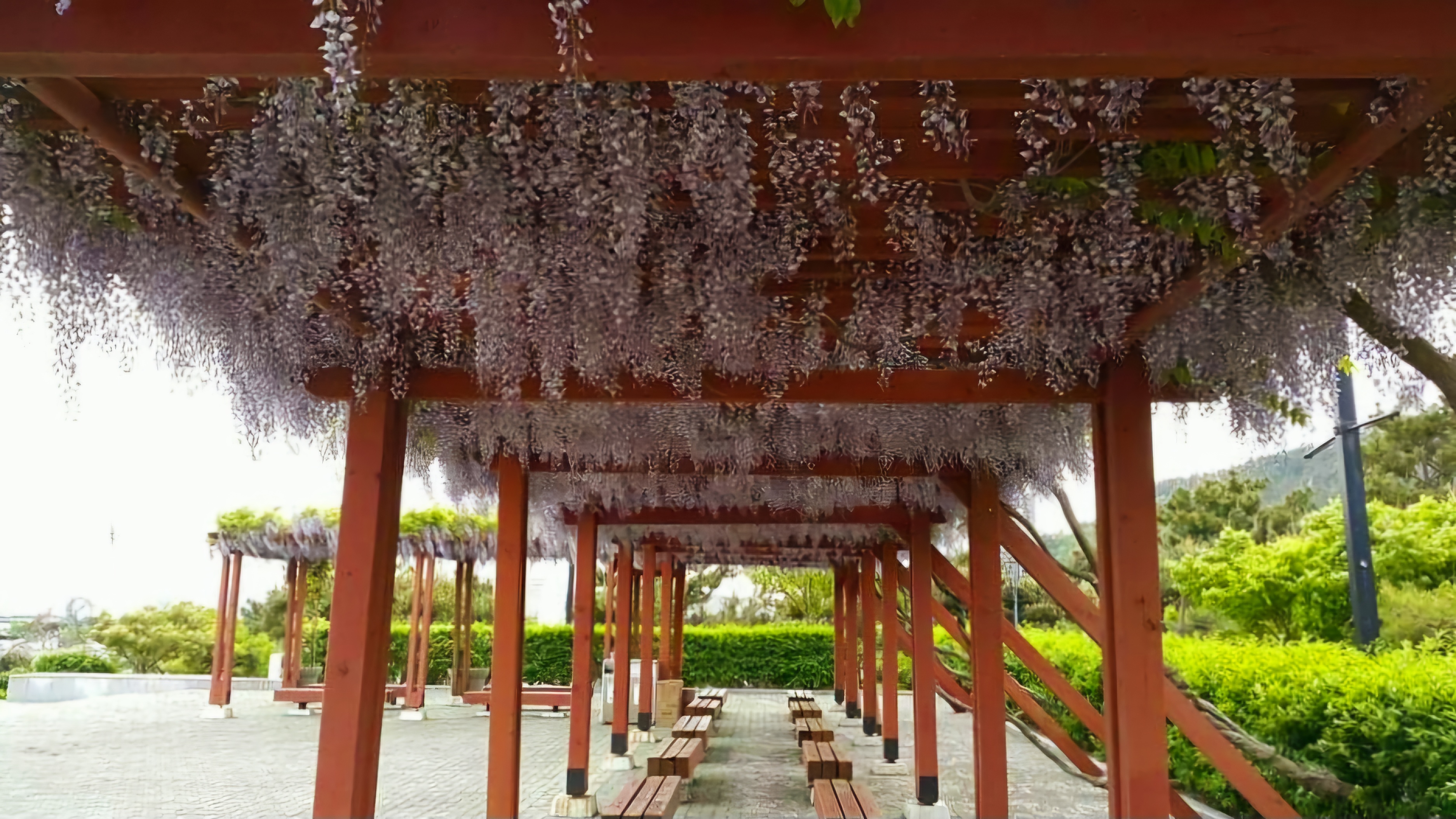 지금 등나무 꽃이 만발하는 무렵이다.