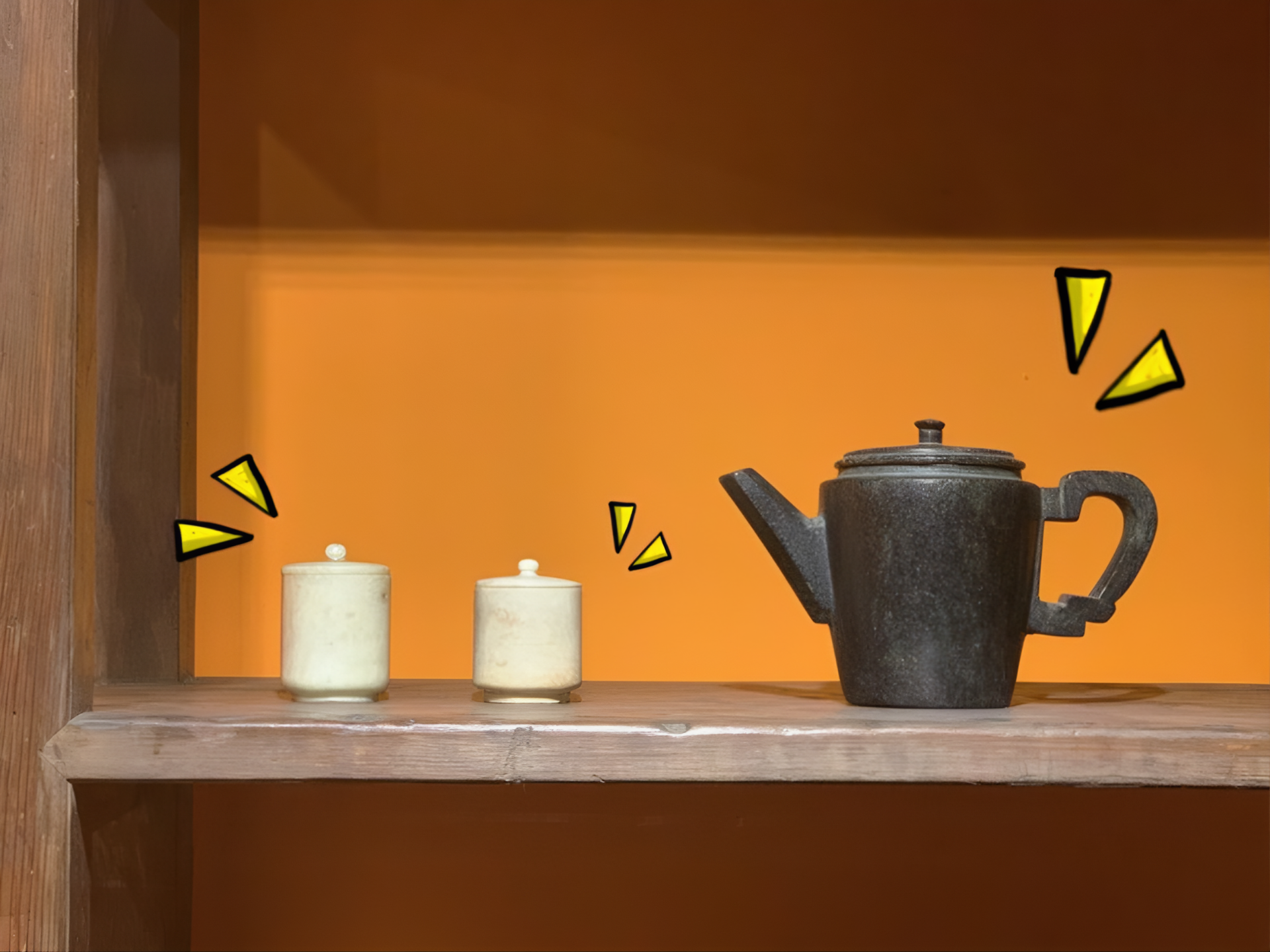 앙증맞은 찻잔 자매, 20세기 태어남, 몸통너비 5.5 키 6.0센티미터, 뚜껑 꼭지가 앙증맞다.