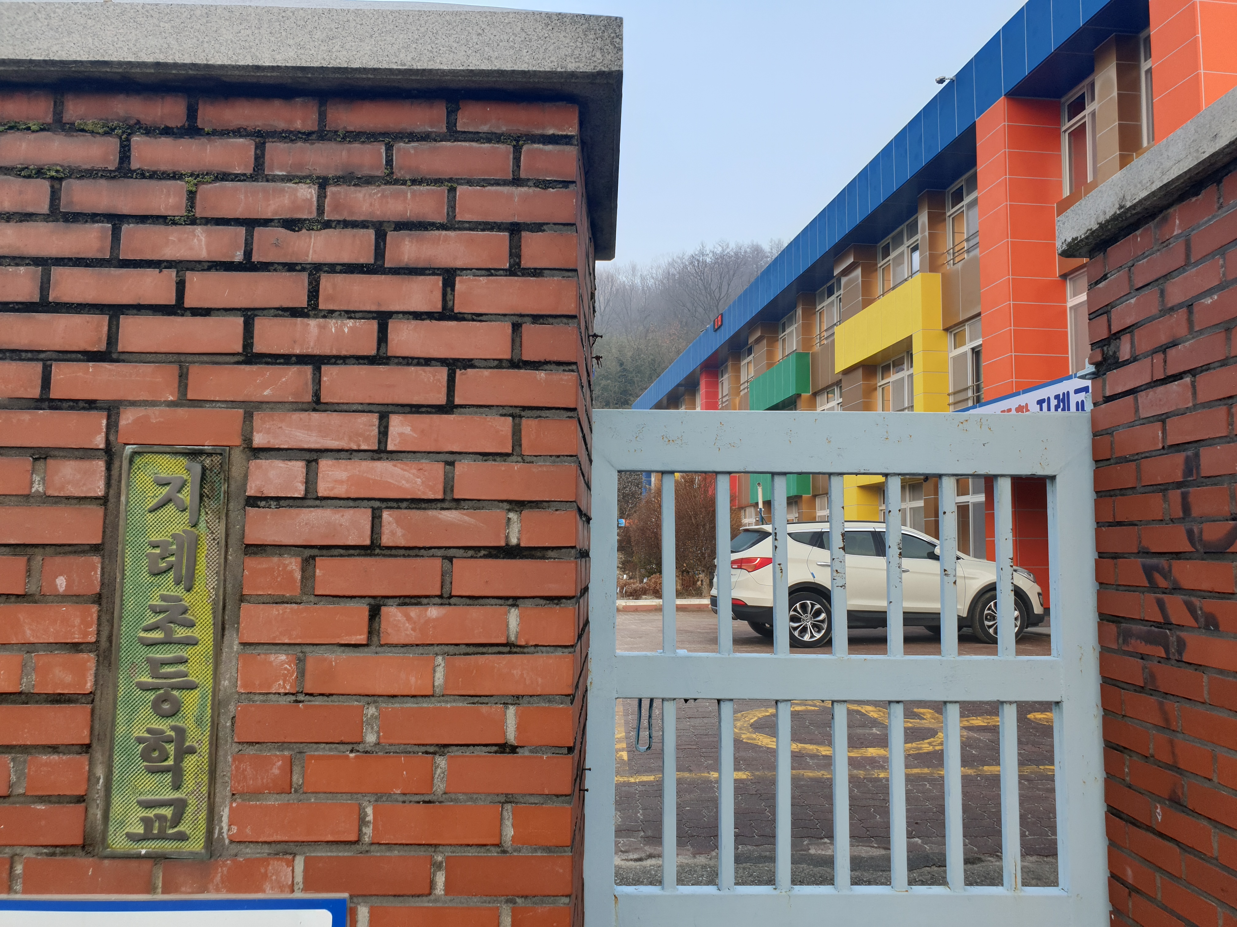흑돼지로 유명한 경북 김천시 지례면 면 소재지에 있는 지례초등학교 정문이라