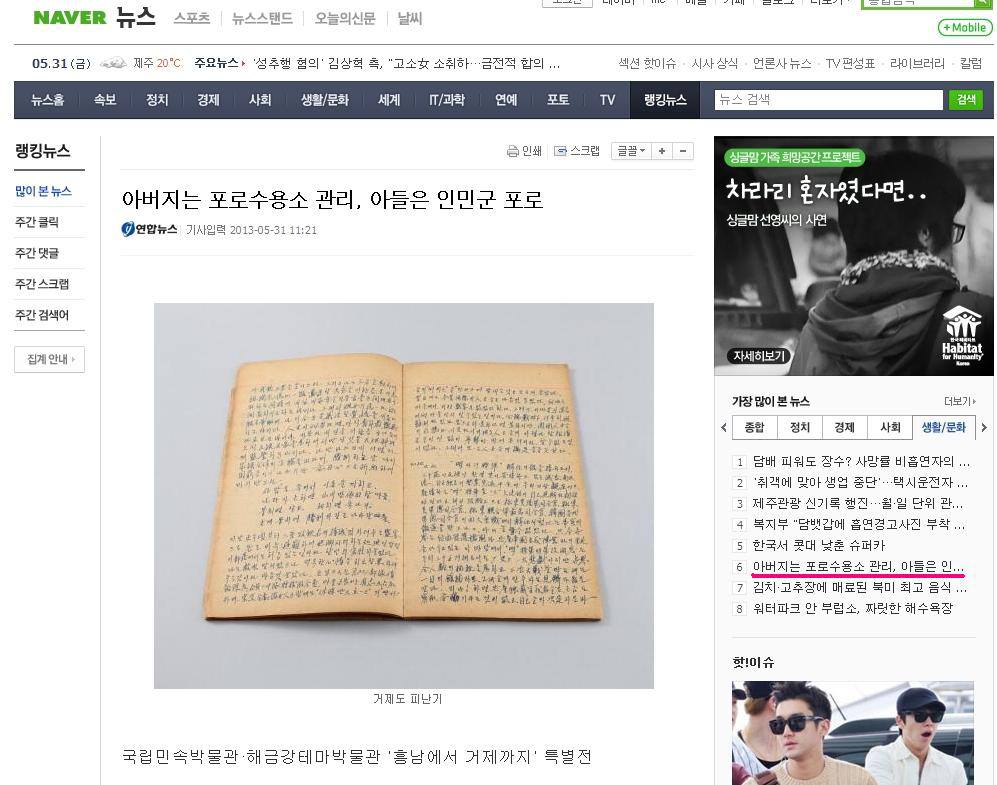 이 생활 좀 하다 보면, 이른바 기구崎嶇한 사연이라는 인연을 조금 만나게 되는데, 그런 기구崎嶇 중에 2013년 다음 기사가 떠오른다. 아버지는 포로수용소 관리, 아들은 인민군 포로기사입력 2013