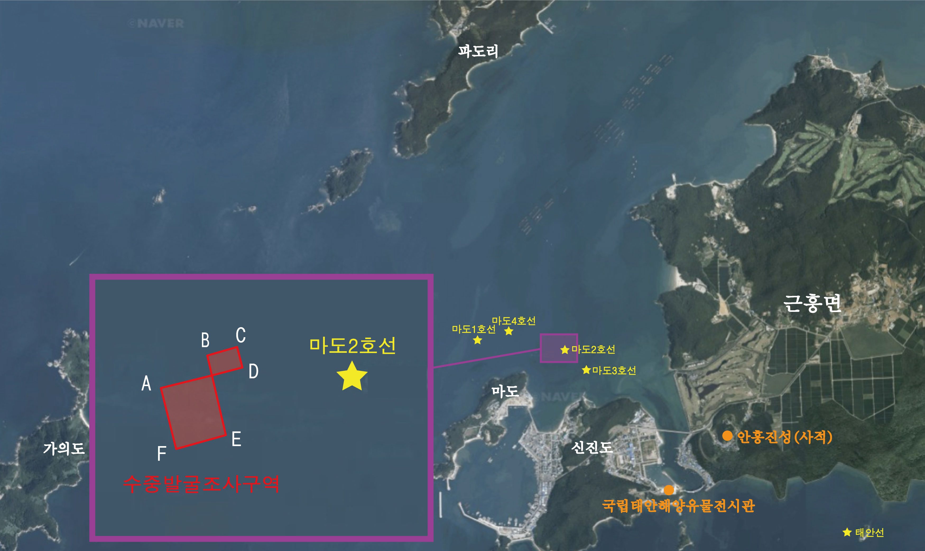 이곳에서는 주꾸미 사건을 필두로 2009년 이래 2019년에 이르기까지 총 9차례 발굴조사가 있어 고려시대 선박 3척(마도1~3호선)과 조선시대 선박 1척(마도4호선)을 확인했으니,