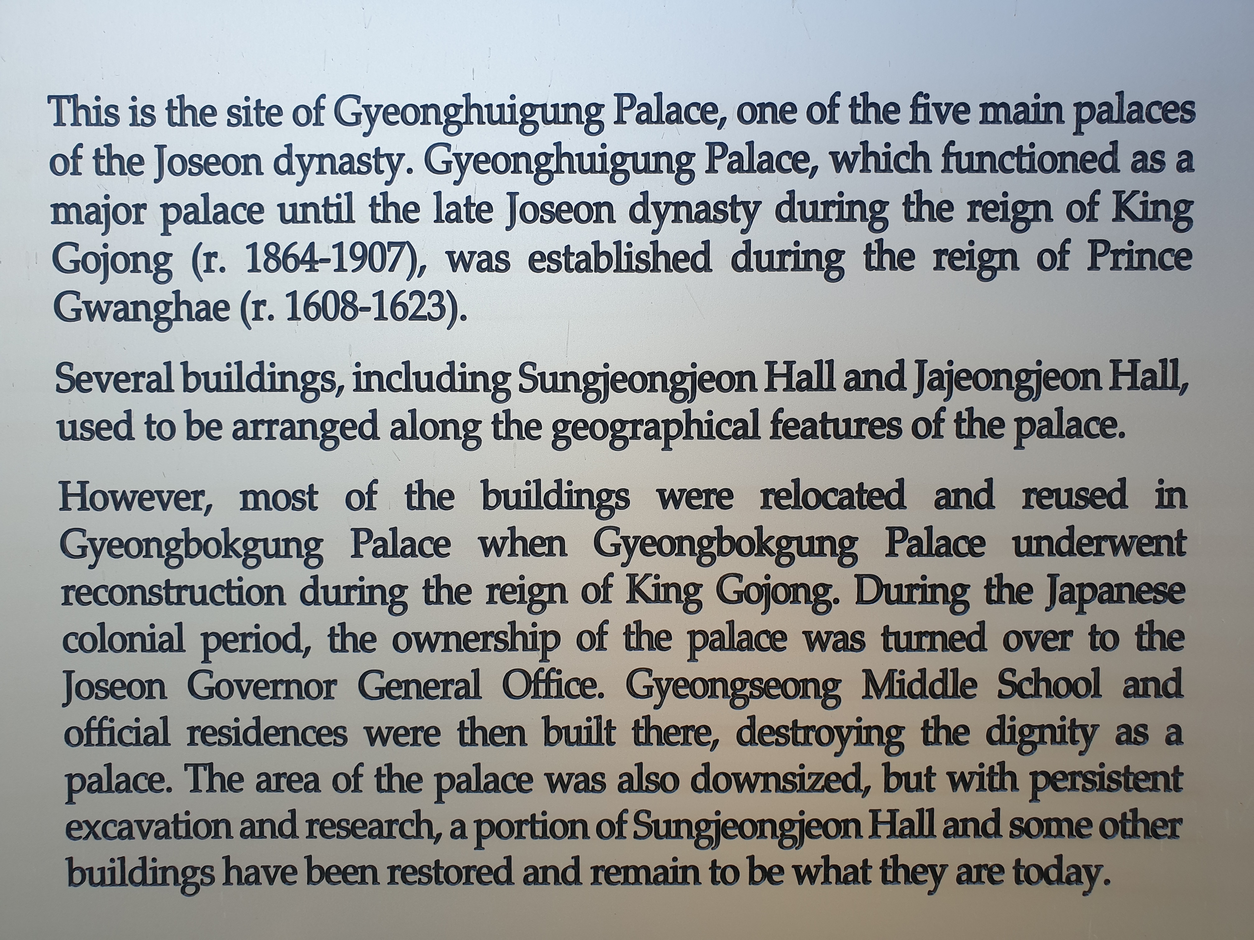 This is the site of Gyeonghuigung Palace, one of the five main palaces of the Joseon dynasty.