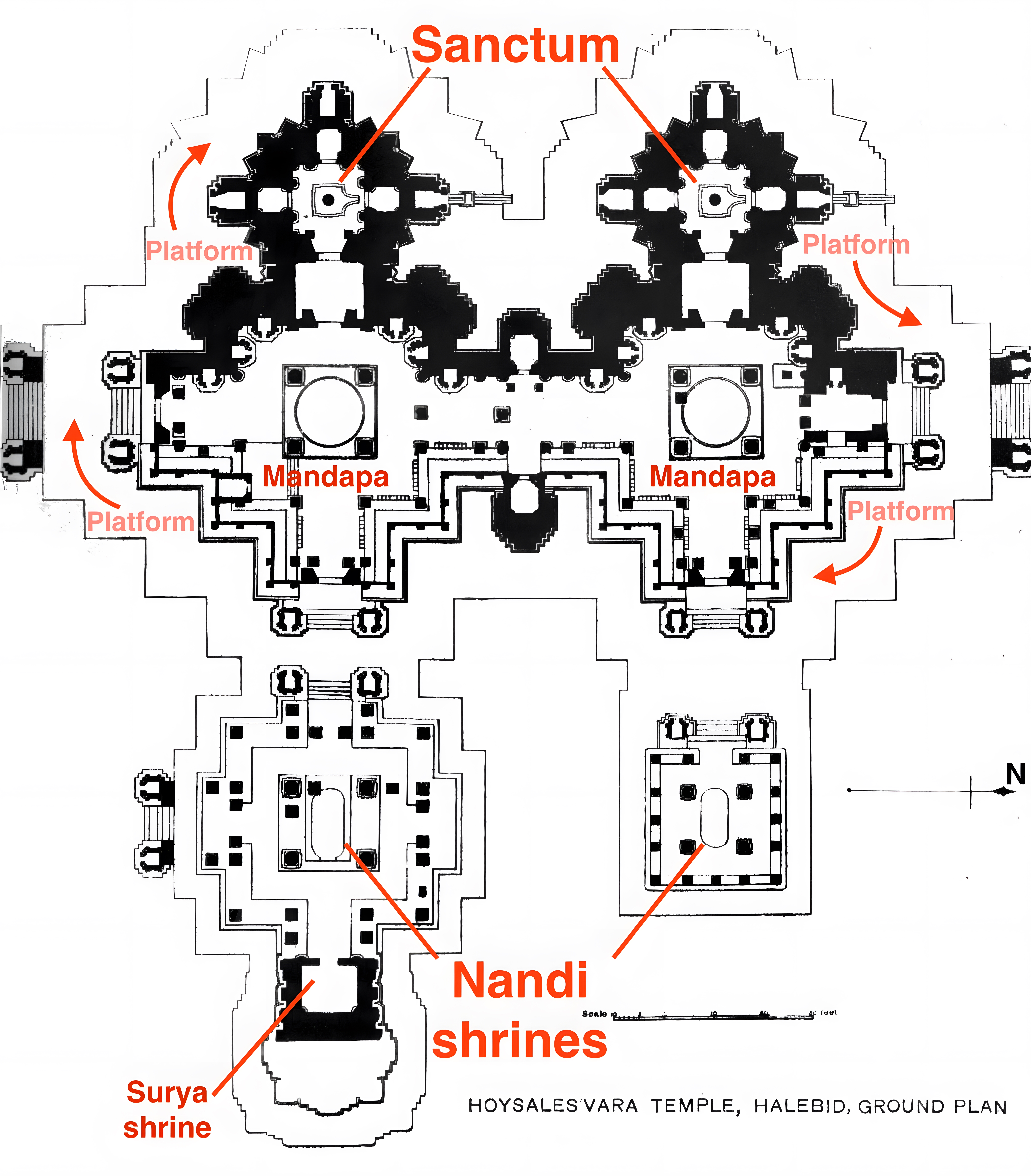 이 사원은 호이살레스와라 Hoysaleswara 와 산탈레스와라 시바링가 Santaleswara Shiva lingas 를 모신 쌍둥이 사원 twin-temple 으로,