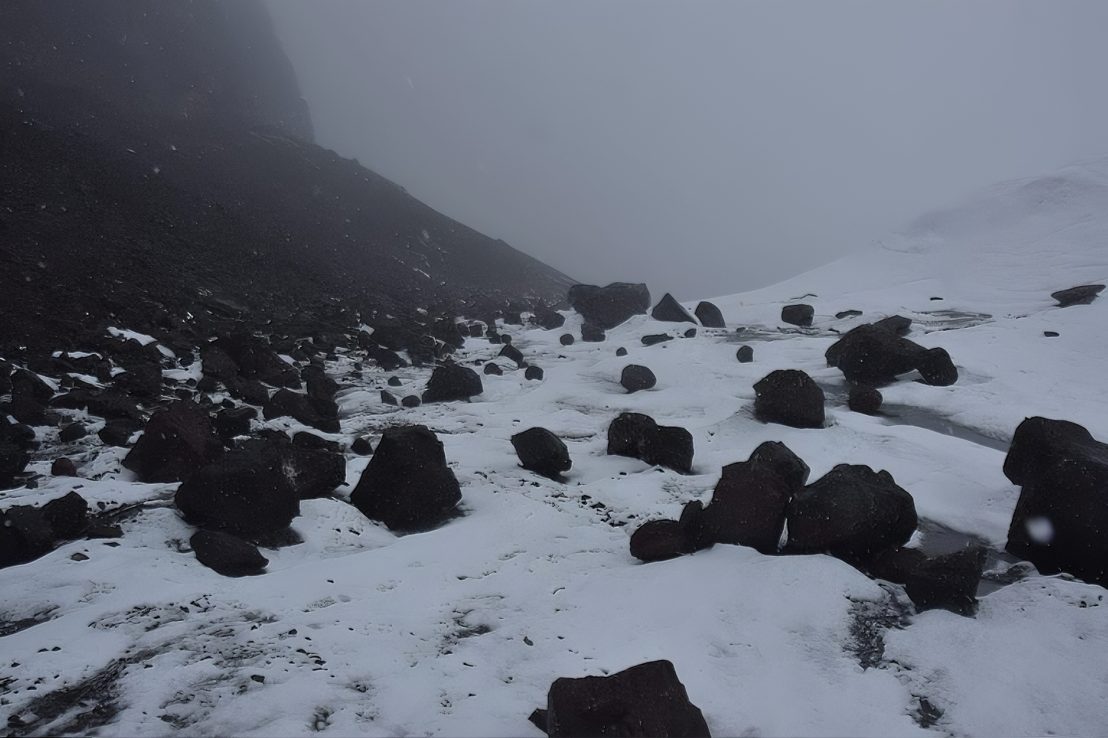 그들이 모두 크레바스 쪽으로 다시 올라가자 날씨가 악화하기 시작했고, 몇 분 만에 눈보라가 반쯤 몰아쳤다.