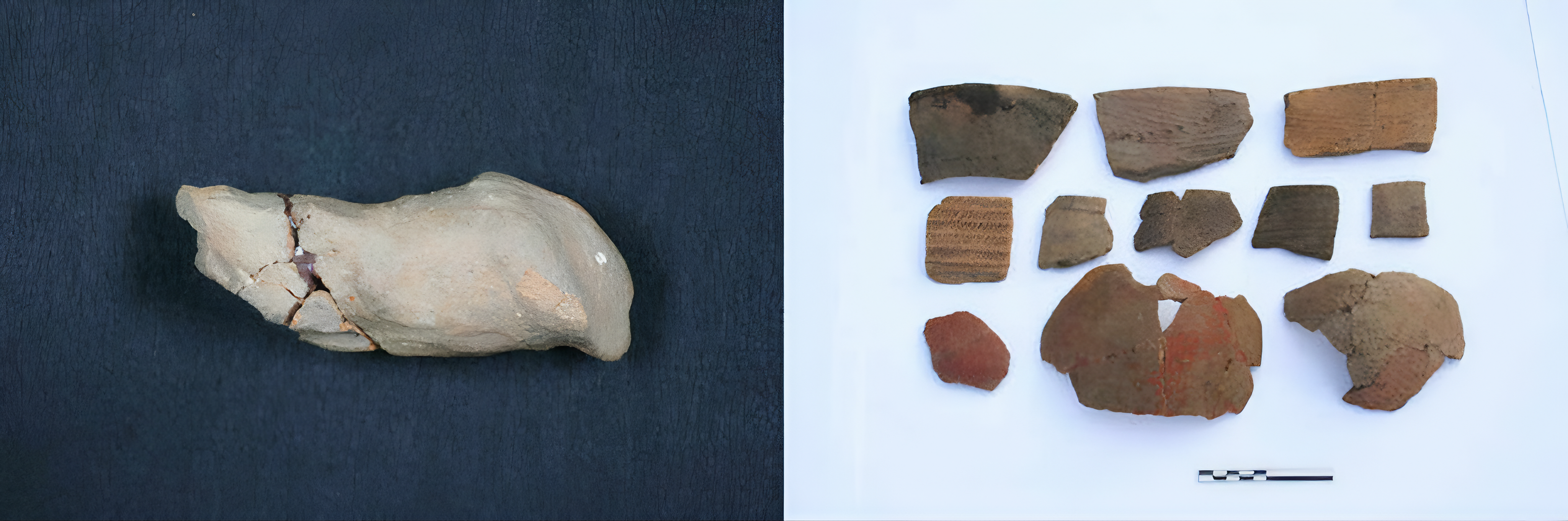 출토 유물로 신석기시대 중기(B.C 3500~2700년)에 속하는 것들로 태선어골문토기, 압인단사선문토기, 삼각집선문토기, 능형집선문토기, 사격자문토기, 자돌점열문토기 등을 비롯한 다양한 토제품과 석기류 60여 점을 보고했다 한다.