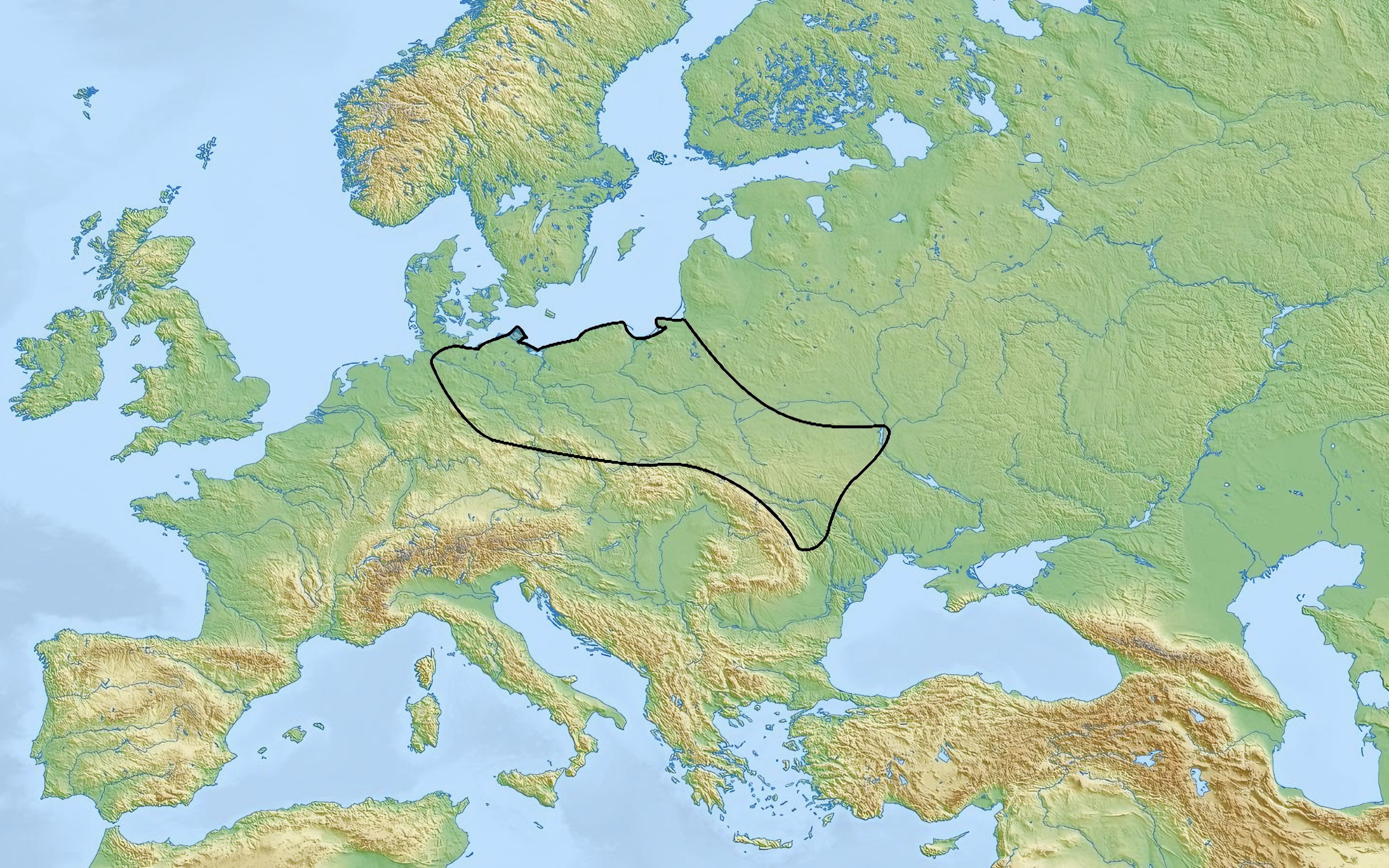 이 문화를 묶음하는 구역은 중부 유럽이라, 앞에서 말한 끈 무늬 문화(아래 지도 참조)랑 근간이 겹친다. 구체로 보면 끈 문화가 훨씬 범위가 넓어 둘 사이 관계를 공간이라는 측면에서 보면, 합집합과 부분 집합 관계랑 같다.