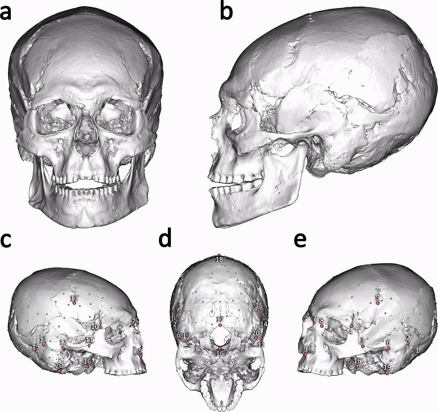 그런 다음 연구진은 AC12 두개골을 네 가지 방법으로 디지털 방식으로 재구성하고, 뼈의 생물학적 형태를 정량화하는 기하학적 형태계측학이라는 기술을 사용하여 가상 재구성 결과를 전 세계 두개골 모습과 비교했다.