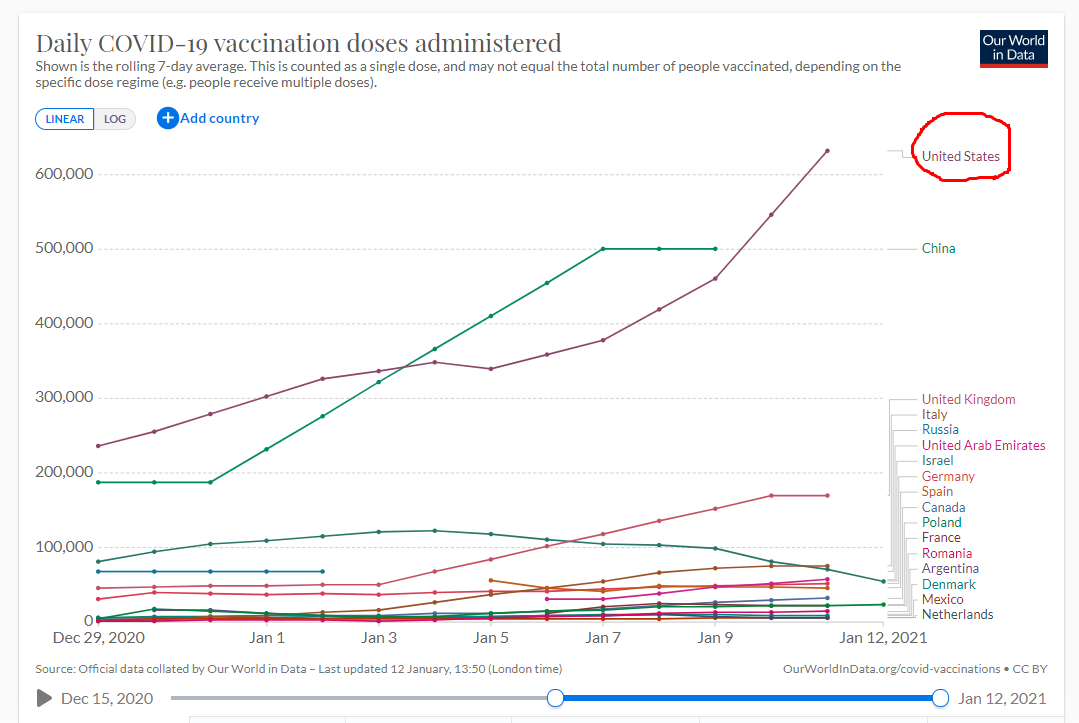 그런 미국이 매섭게 접종숫자를 끌어올리기 시작했다. 폭설 같은 영향도 있어 백신배포수송이 여의치 않다 이런 말도 들리더니만, 제반 준비를 끝내고 이제는 궤도에 올라가지 않나 하는 그런 느낌을 준다.