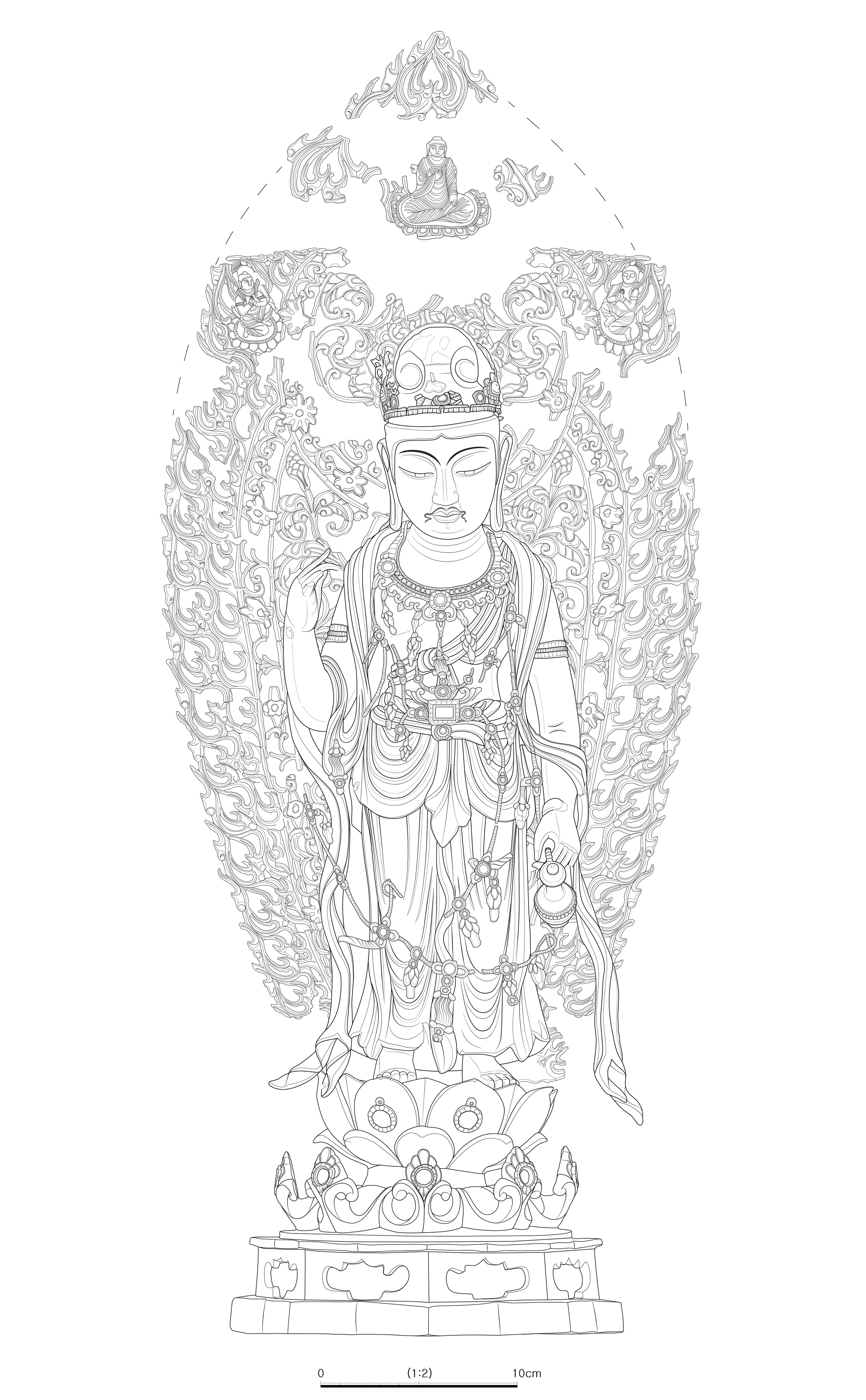 * Bogwan(寶冠): A crown decorated with jewelry or metal on the top of Buddha statues
