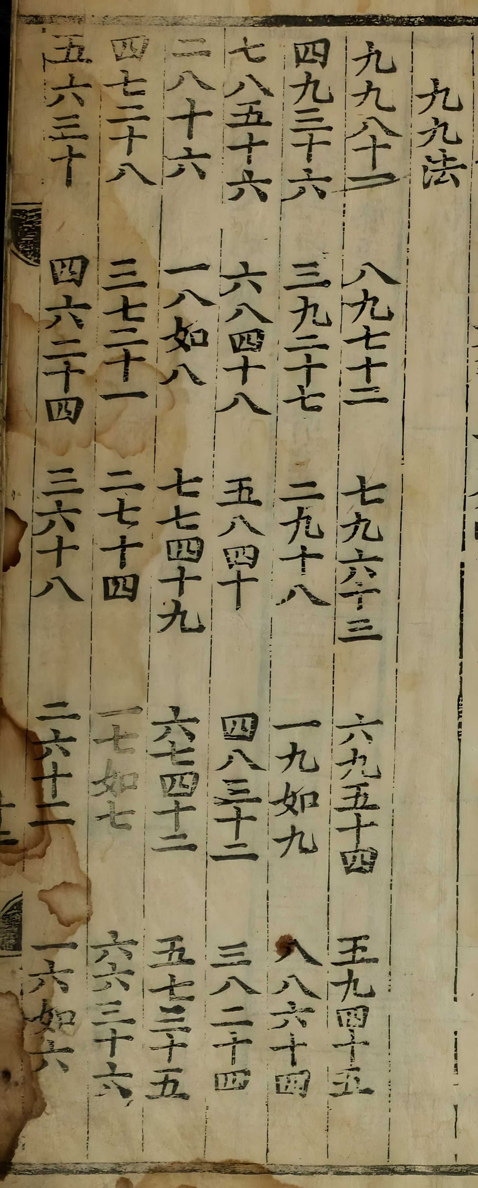조선후기 구구단을 구구법九九法이라고 하고, 구구팔십일부터 거꾸로 외었나보다.***9부터 읽는 저 방식이 동아시아에선 유구한 전통 아닌가 싶다.고대 일본 구구단도 구구팔십일부터 시작한다