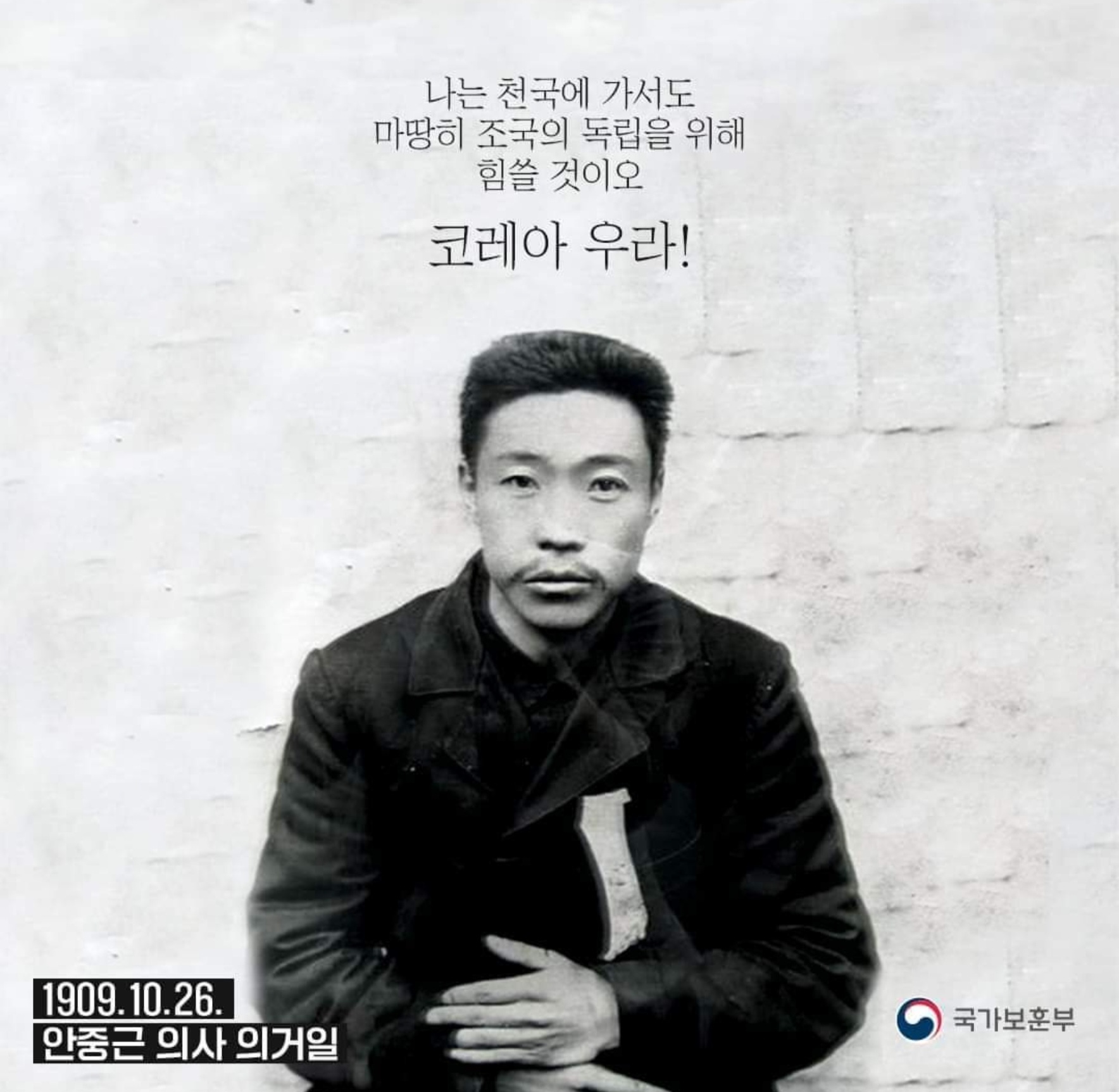 오늘은 1909년 10월 26일 안중근 의사가 하얼빈역에서 일본 제국주의의 상징인 이토 히로부미를 처단한지 144주년이 되는 날입니다.