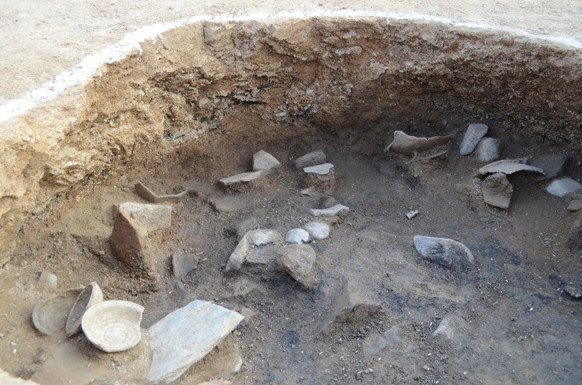 This storage, which has not yet been fully excavated, is estimated to be 4 m north and south and 3.5 m east and west inside a 565 cm long and 535 cm wide pit.