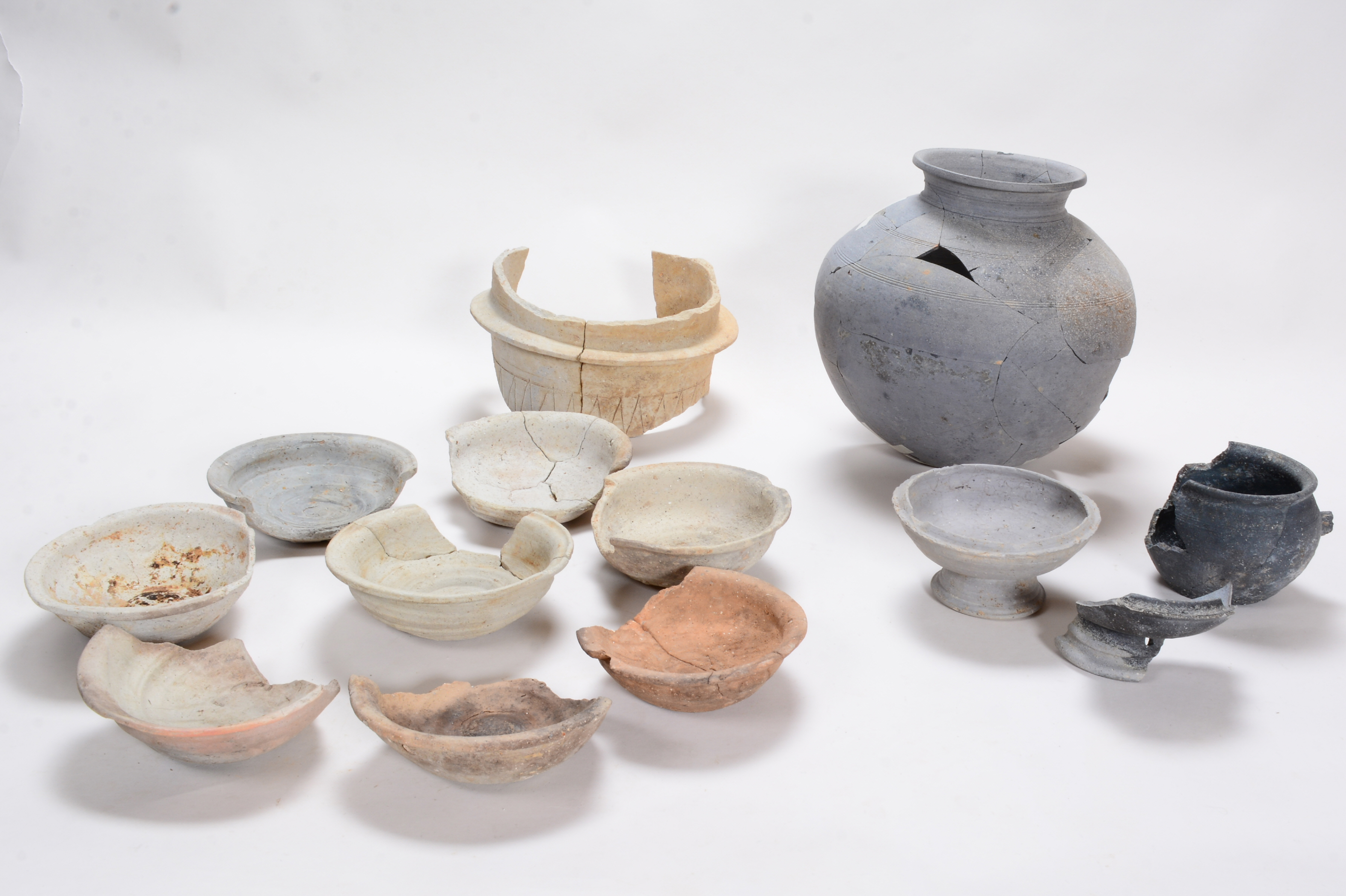 Inside these, earthenware, thought to have been mixed in later piles of soil, are excavated.