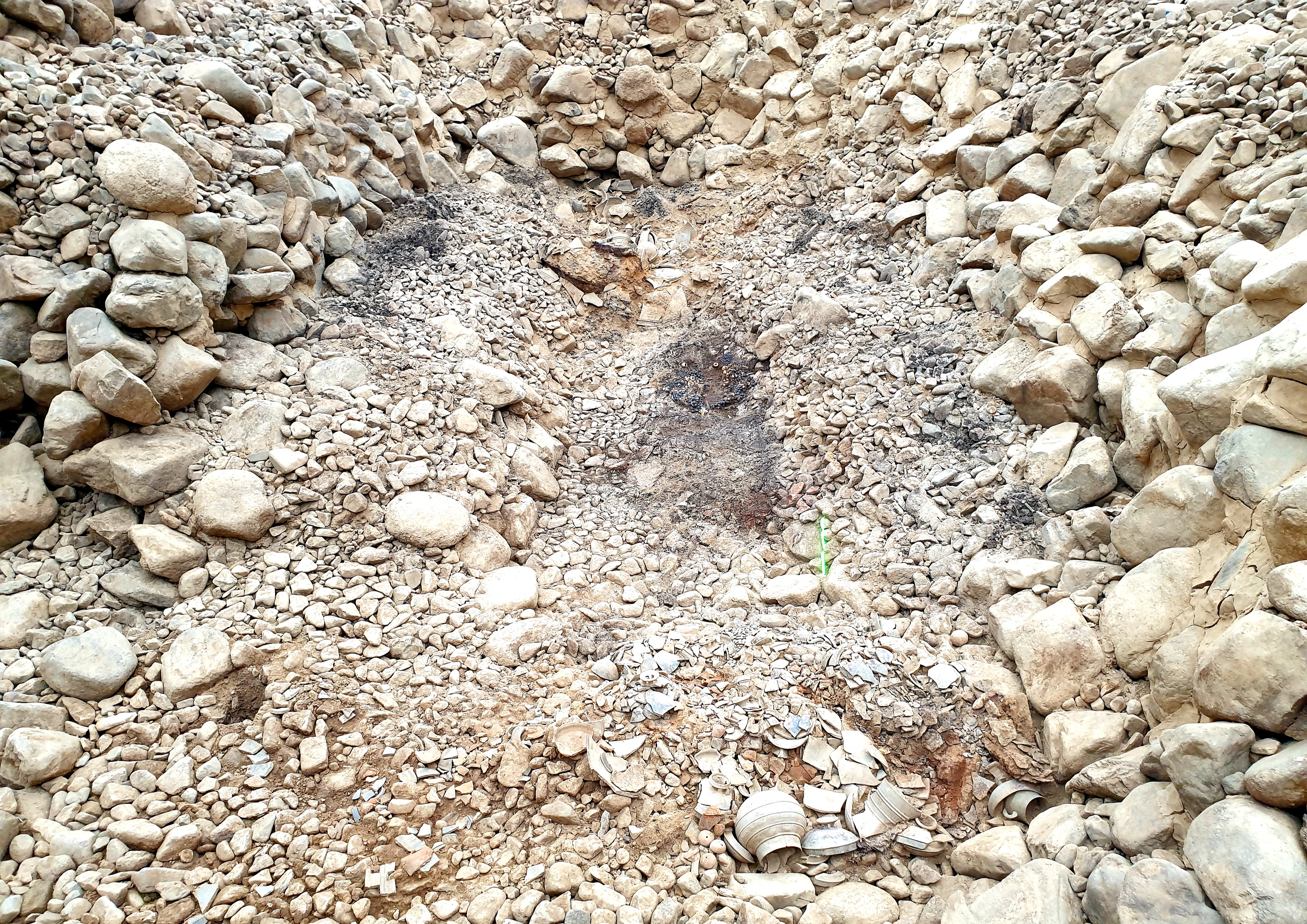 Currently, the excavation has been exposed artifacts from the buried person. In addition, ritual traces performed around stone protection for the tomb, burial methods, structure and construction methods of piling stone and ritual acts at various spots have been identified.