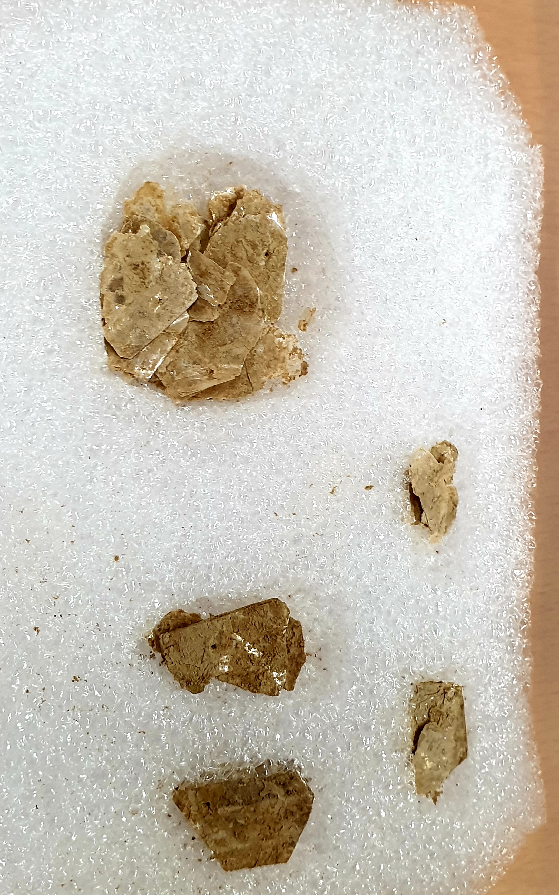 The ornaments of golden-edge jewel beetles at tomb no. 44 lead to assume the status of the buried person.