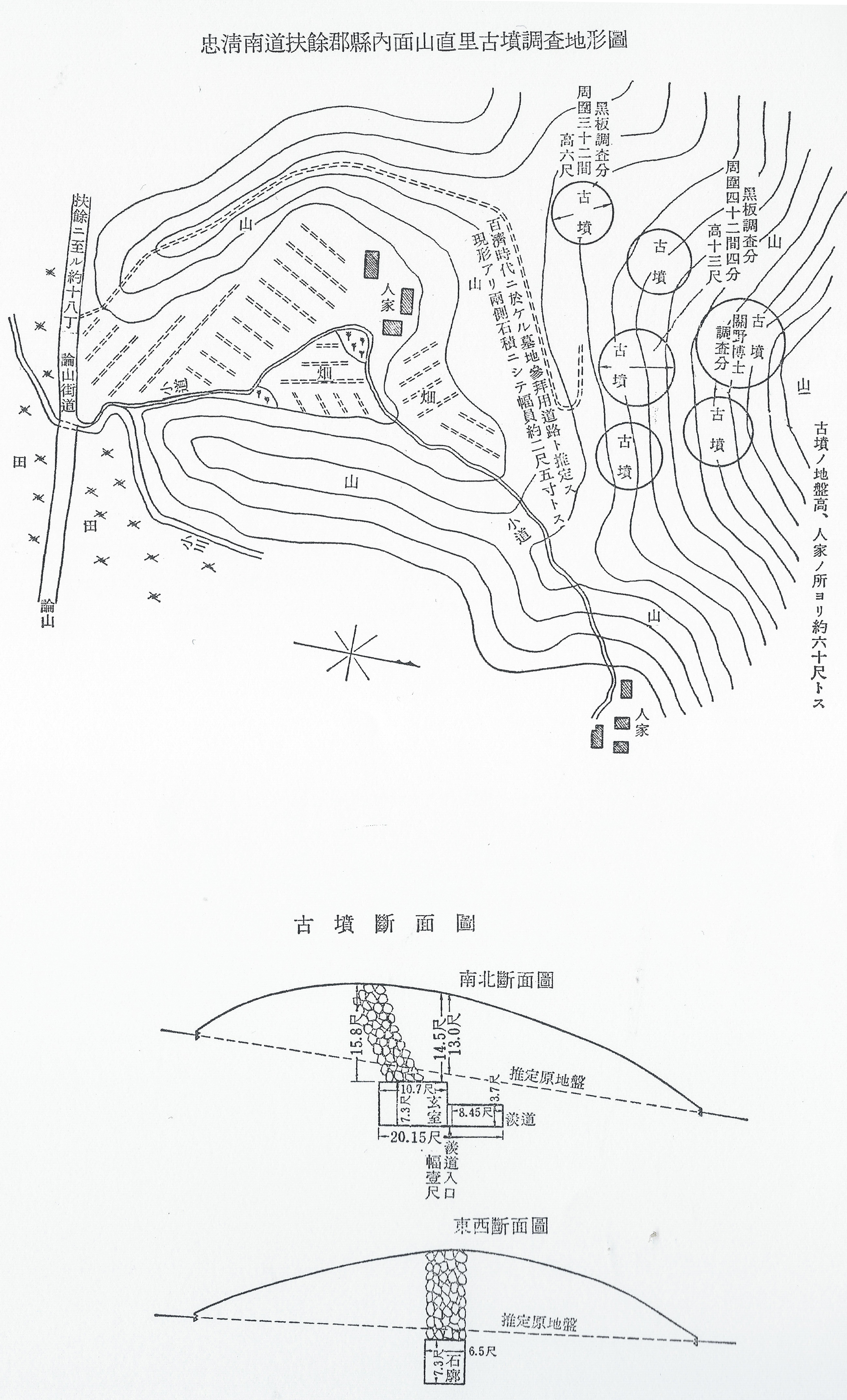 이를 백제시대 왕릉으로 재발견한 이가 흑판승미 黑板承美 구로이타 가쓰미 와 관야정 關野貞 세키노 다다시다.