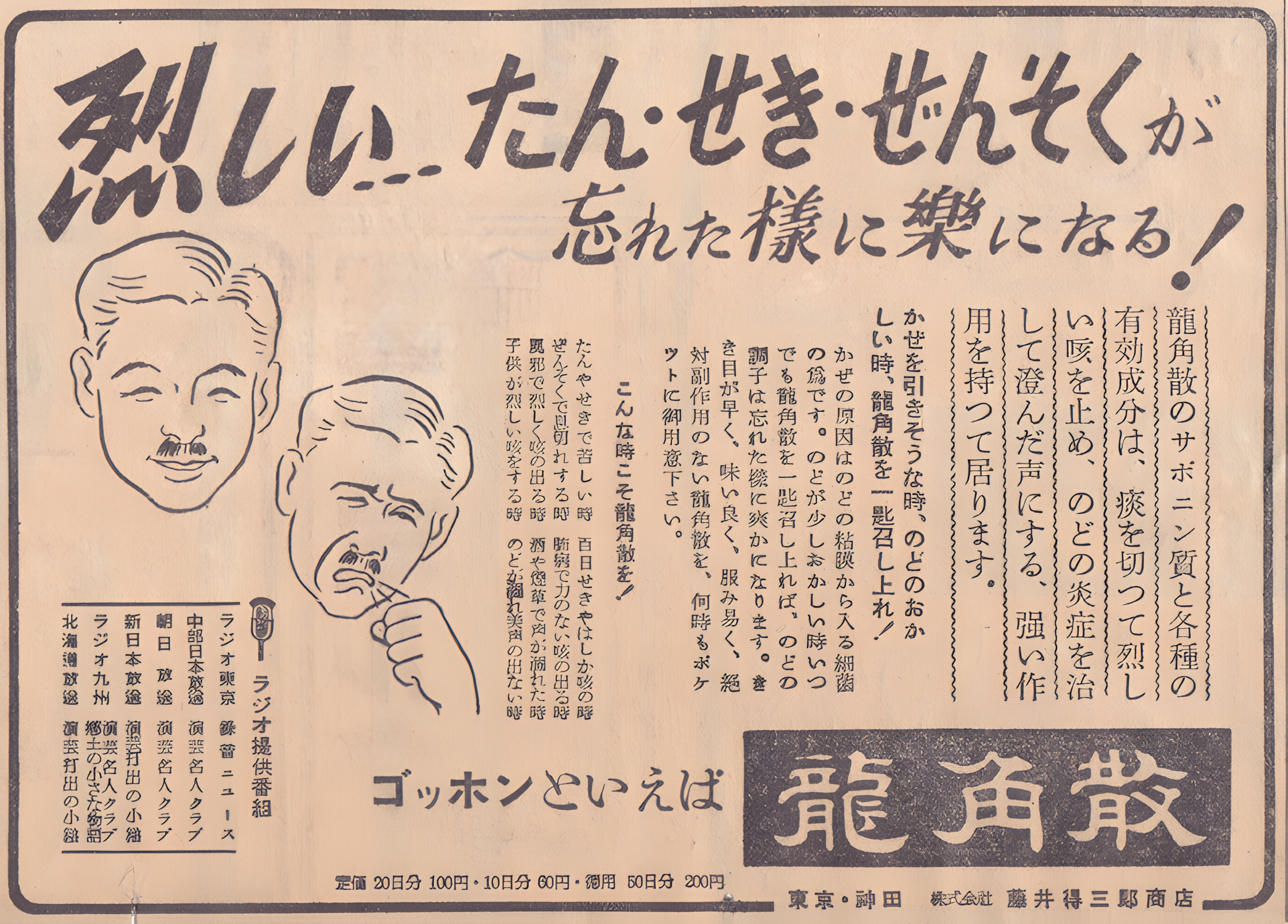 용각산龍角散은 19세기 메이지유신 전에 발명된 꽤 오래된 한방약이다.