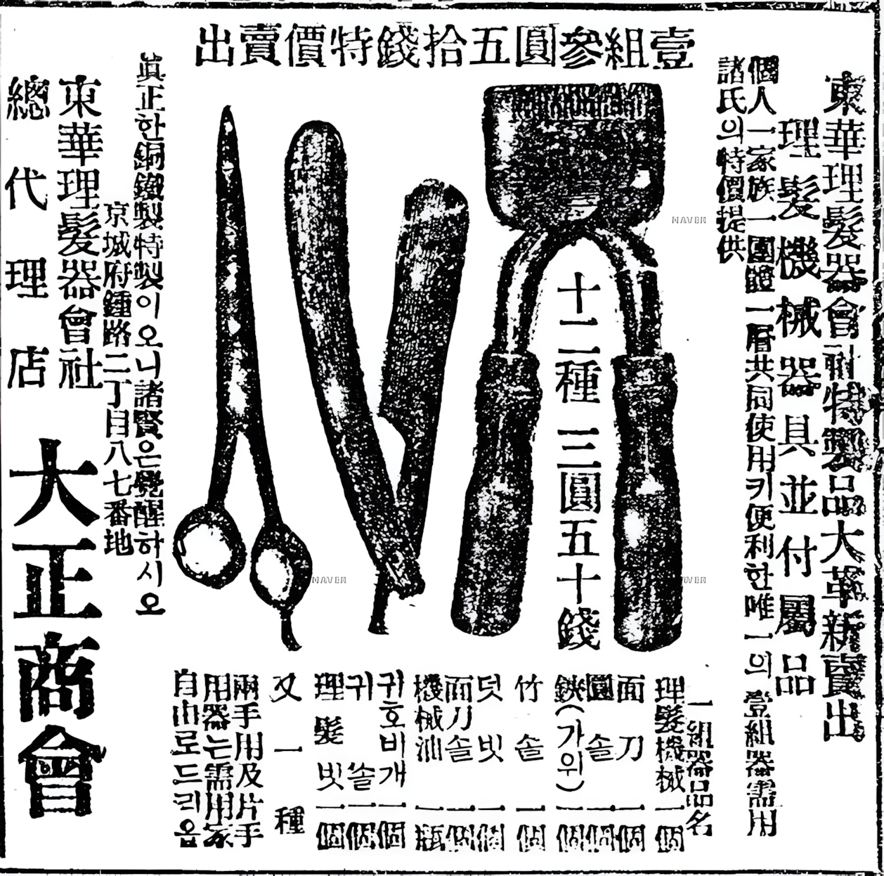 1920년대에는 이발기 세트, 이른바 바리깡과 그 세트를 파는 광고가 꽤 나온다.