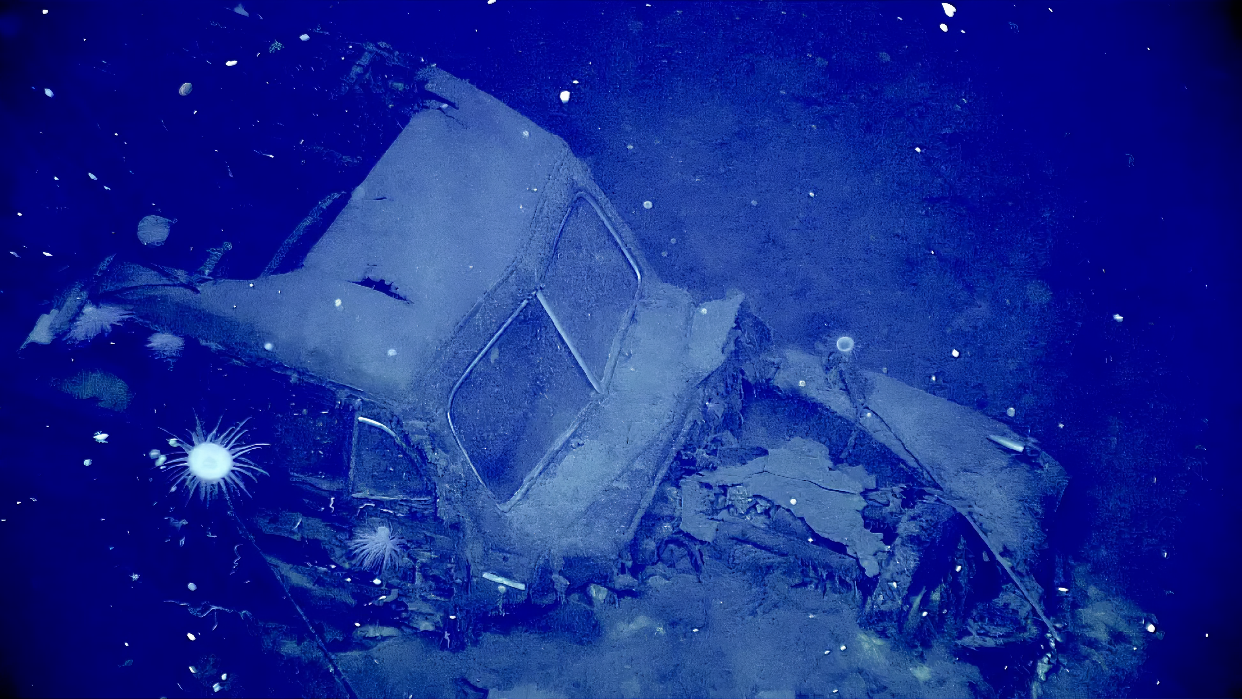 자동차 잔해는 항공모함 거대 격납고 선미aft 좌현port 에서 발견되었는데, 격납고는 최상층 비행갑판 flight deck 아래 함선의 거의 길이만큼 뻗어 있었다.