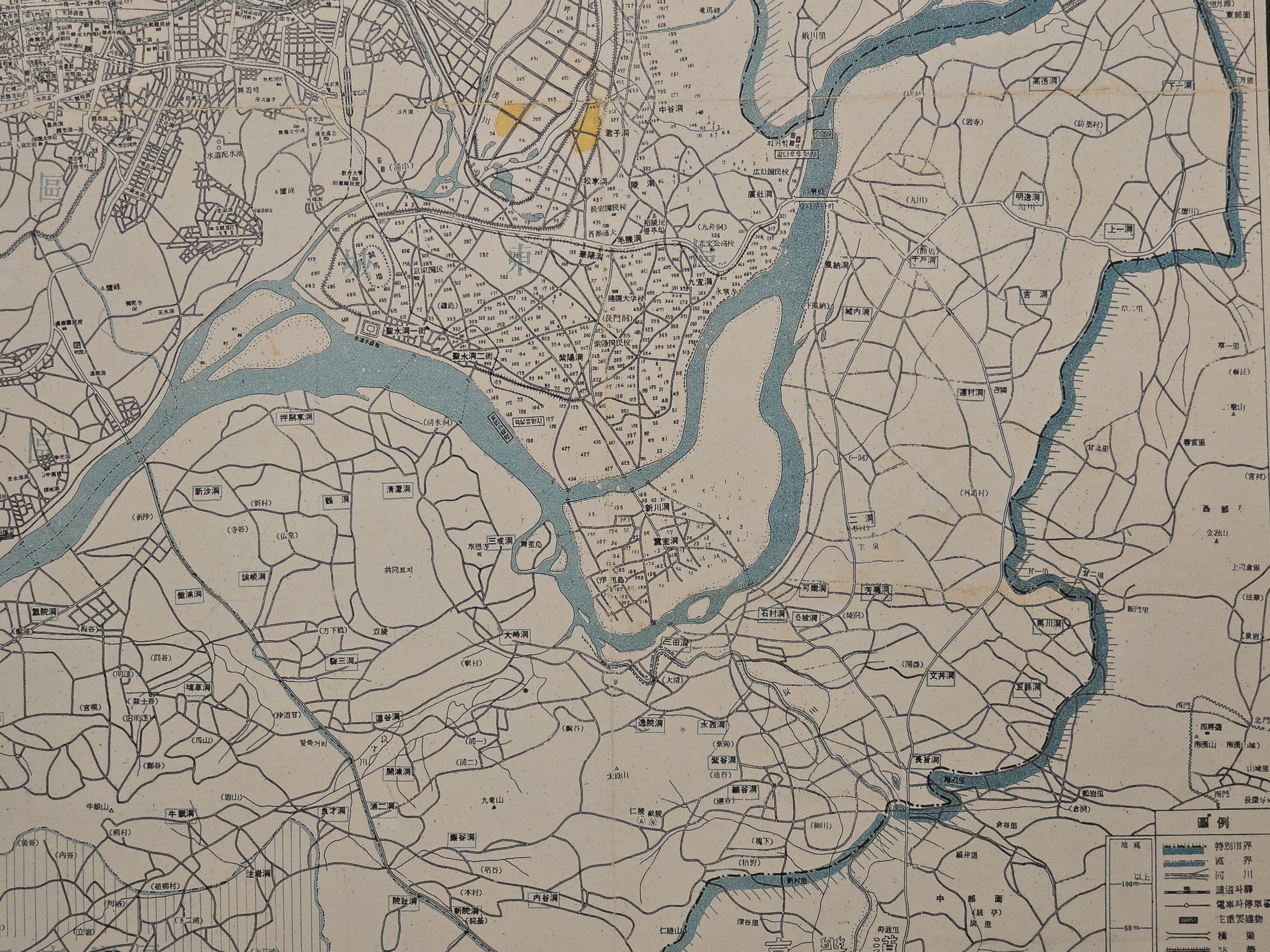 1963년 서울시 행정구역 확장 내역을 반영한다.