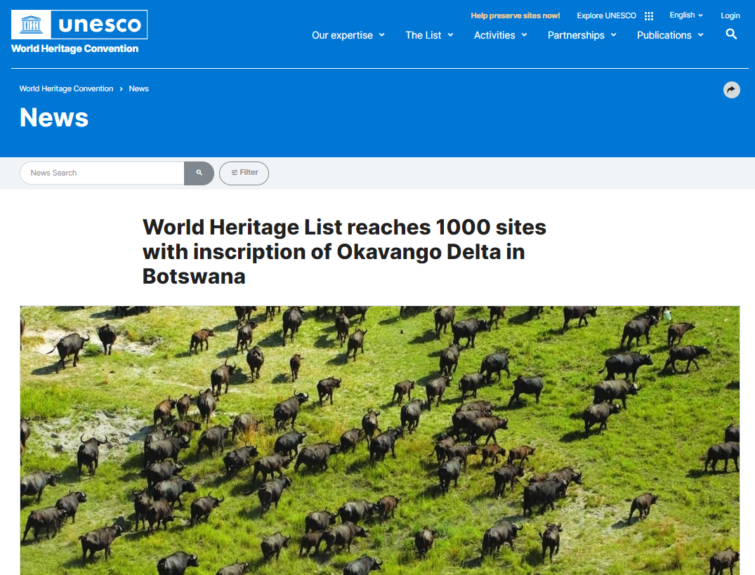 드디어 보츠와나의 <오카방고 델타 Okavango Delta>를 등재함으로서 1,000건에 다다르게 되고,
