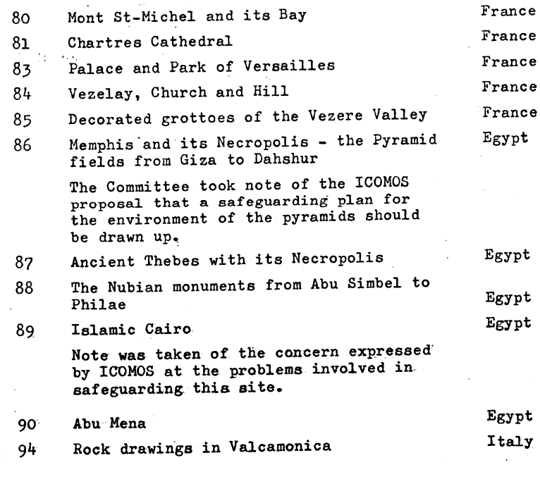 바로 다음 해인 1980년에 <로마 Historic Centre of Rome> 와 <산타마리아 델라그라지에 교회와 최후의 만찬 Church and Dominican Convent of Santa Maria delle Grazie with "The Last Supper" by Leonardo da Vinci.>을 등재했다.