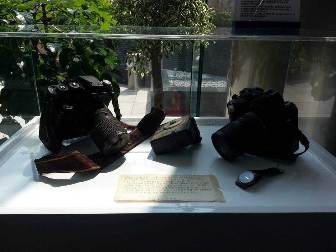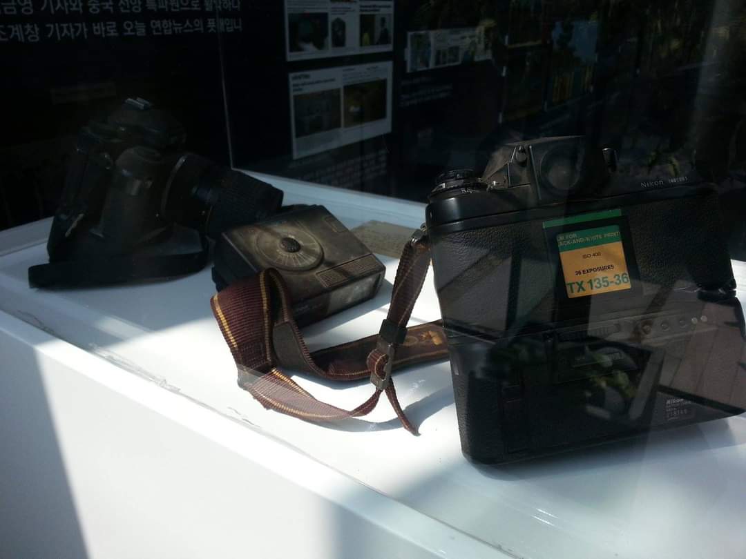 서울 종로구 수송동 연합뉴스 본사 1층에는 그날의 참상을 기리는 그의 사진기와 마지막 사진이 전시 중이다.