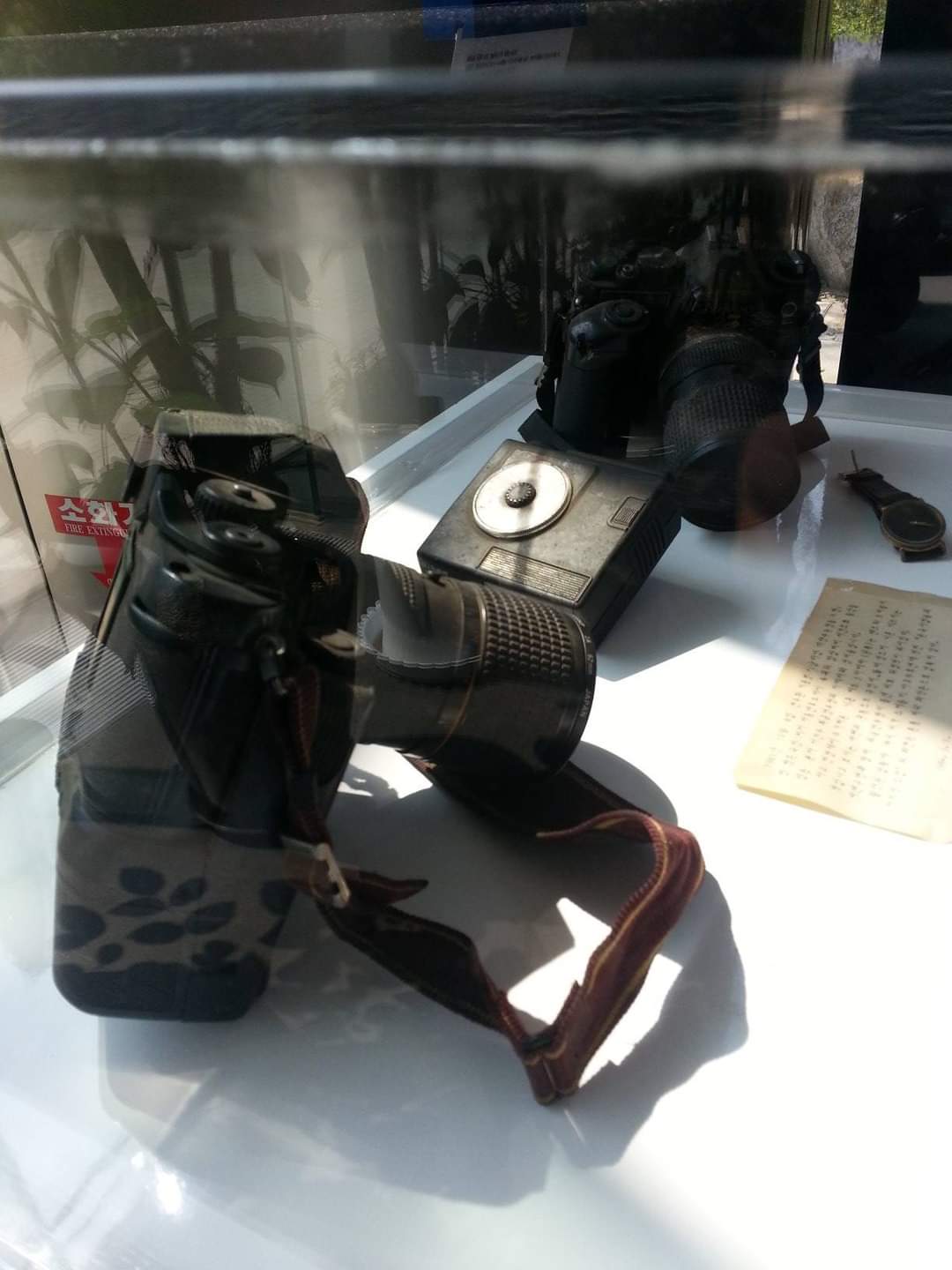 카메라 테스트를 위해 셔터를 누르고 다시 컬러필름으로 갈아넣는 순간 폭탄이 터졌으니 말이다. 그때도 통상 카메라 기자는 1대만 휴대하지 않는다. 렌즈가 깨진 그 카메라가 포착한 그 사진이 살아남았다.