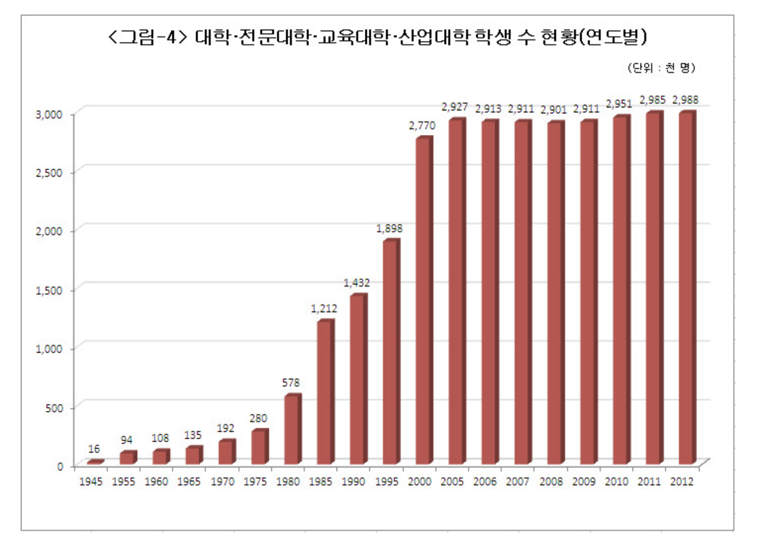 아마 이 시대에 대학생수가 백만명을 넘기고,