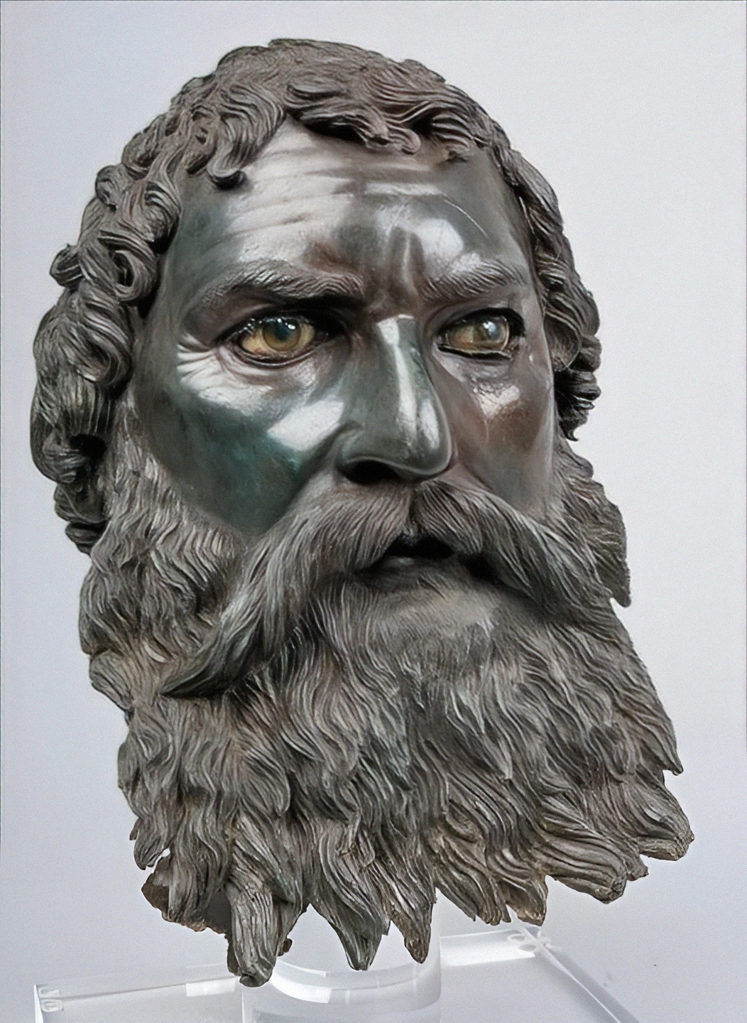 이 청동 두상은 실물 크기 성인 남자 조각상이다.
