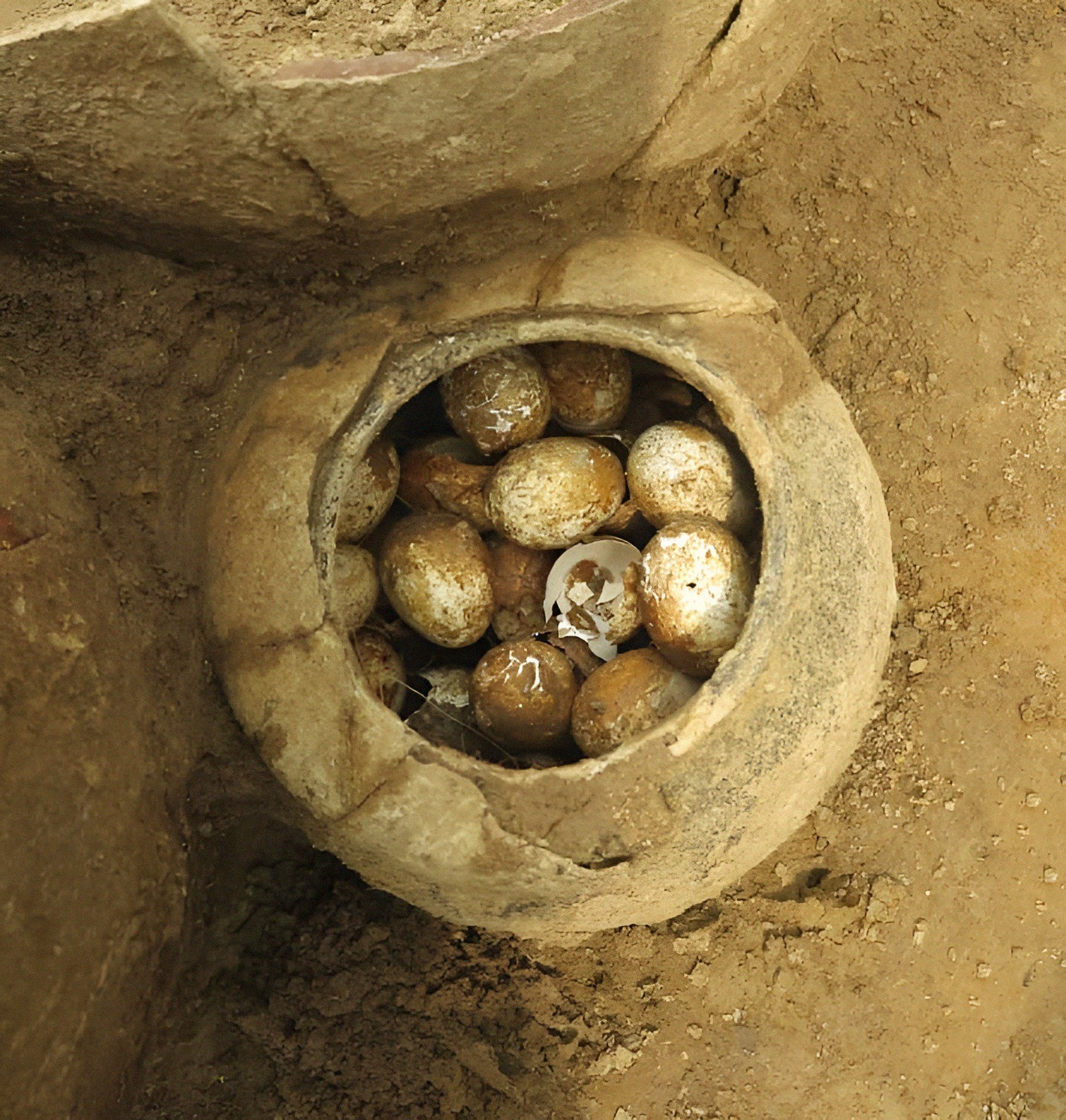 2500년전 계란을 한 꾸러미 가득 담은 항아리가 Jiangsu, China서 드러난 춘추시대(770 to 475 BC) 무덤에서 발견됐다고.