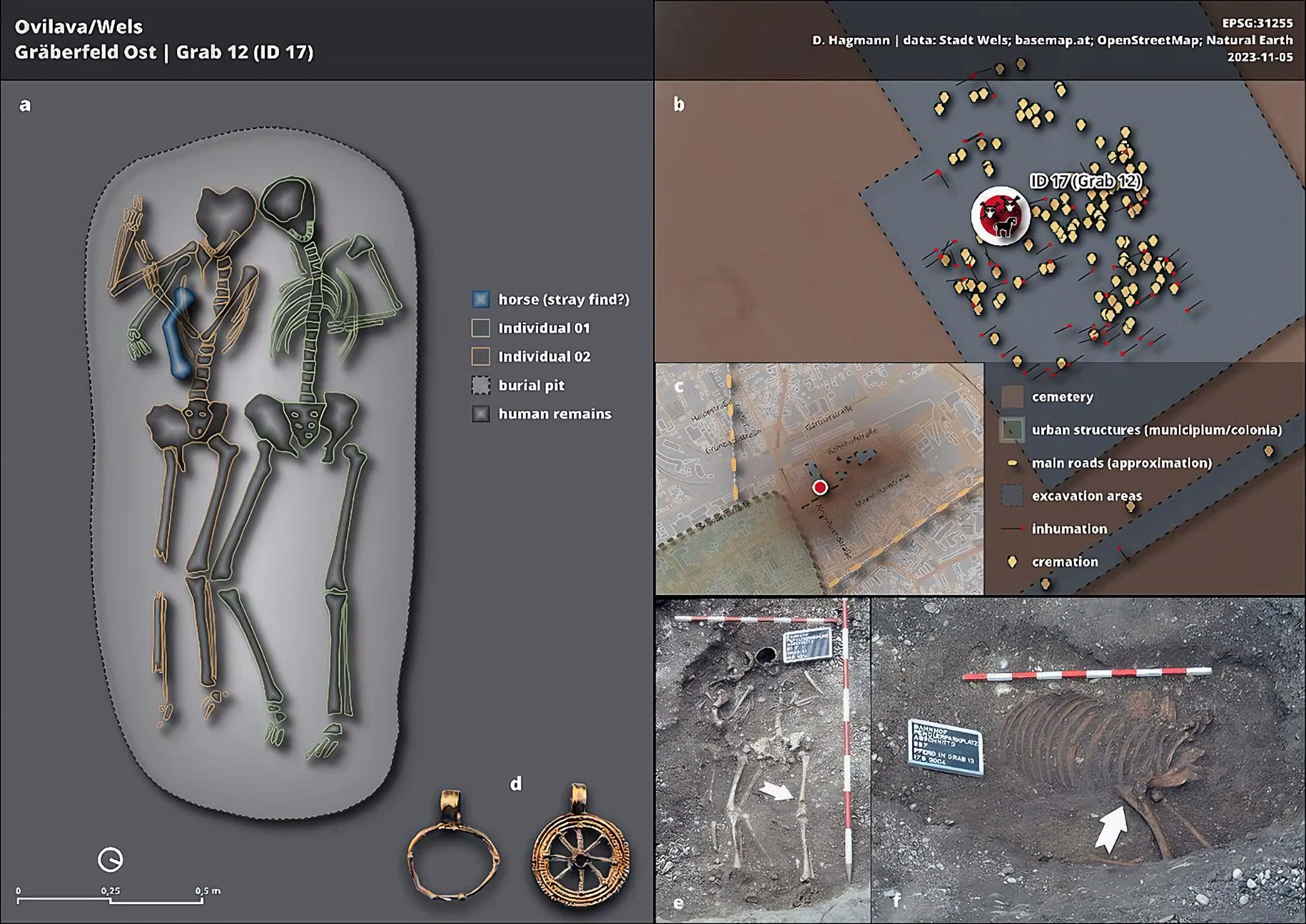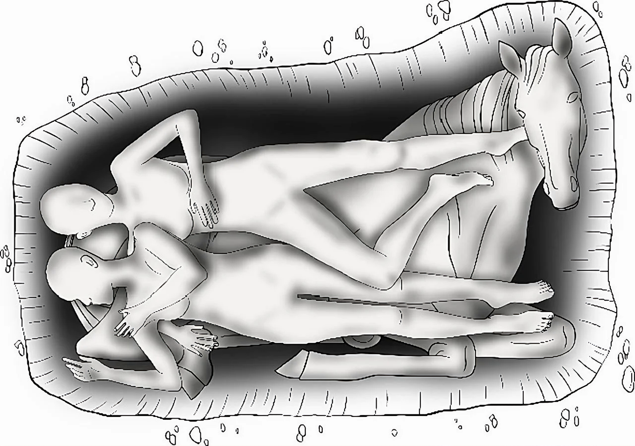 2004년 오스트리아 벨스Wels라는 데서 공사 중 특이한 무덤이 발굴되었는데, 서로 껴안은 두 사람 유해와 최소 한 마리 이상 되는 말이 묻혔다.