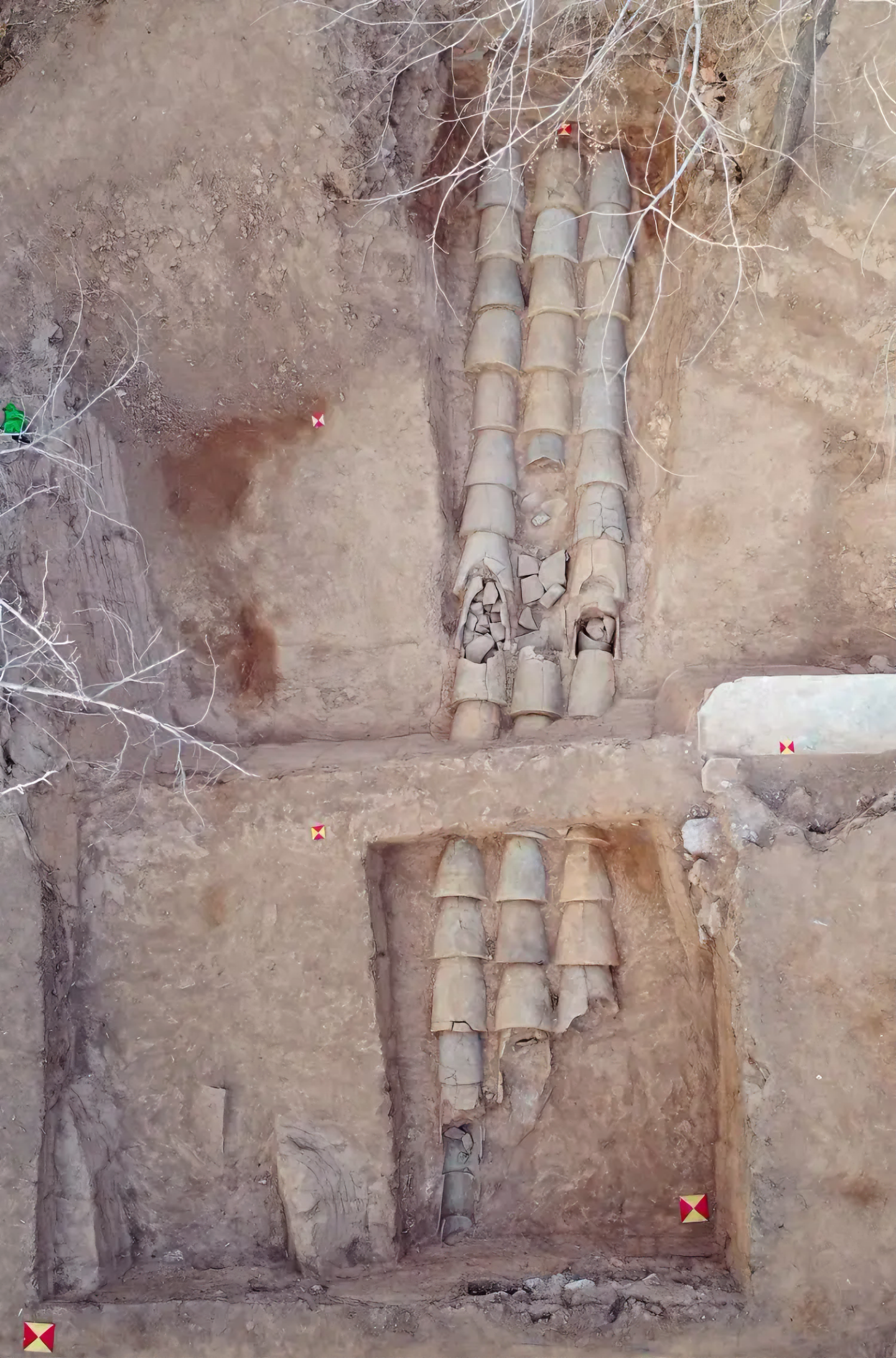 "요구窑沟" 지점에서 벽돌과 기와 가마 분포 지역이 발견되었고, 대량의 유물이 출토되어 대지의 건축 자재 시대를 판별하는 비교적 명확한 근거를 제공했다.