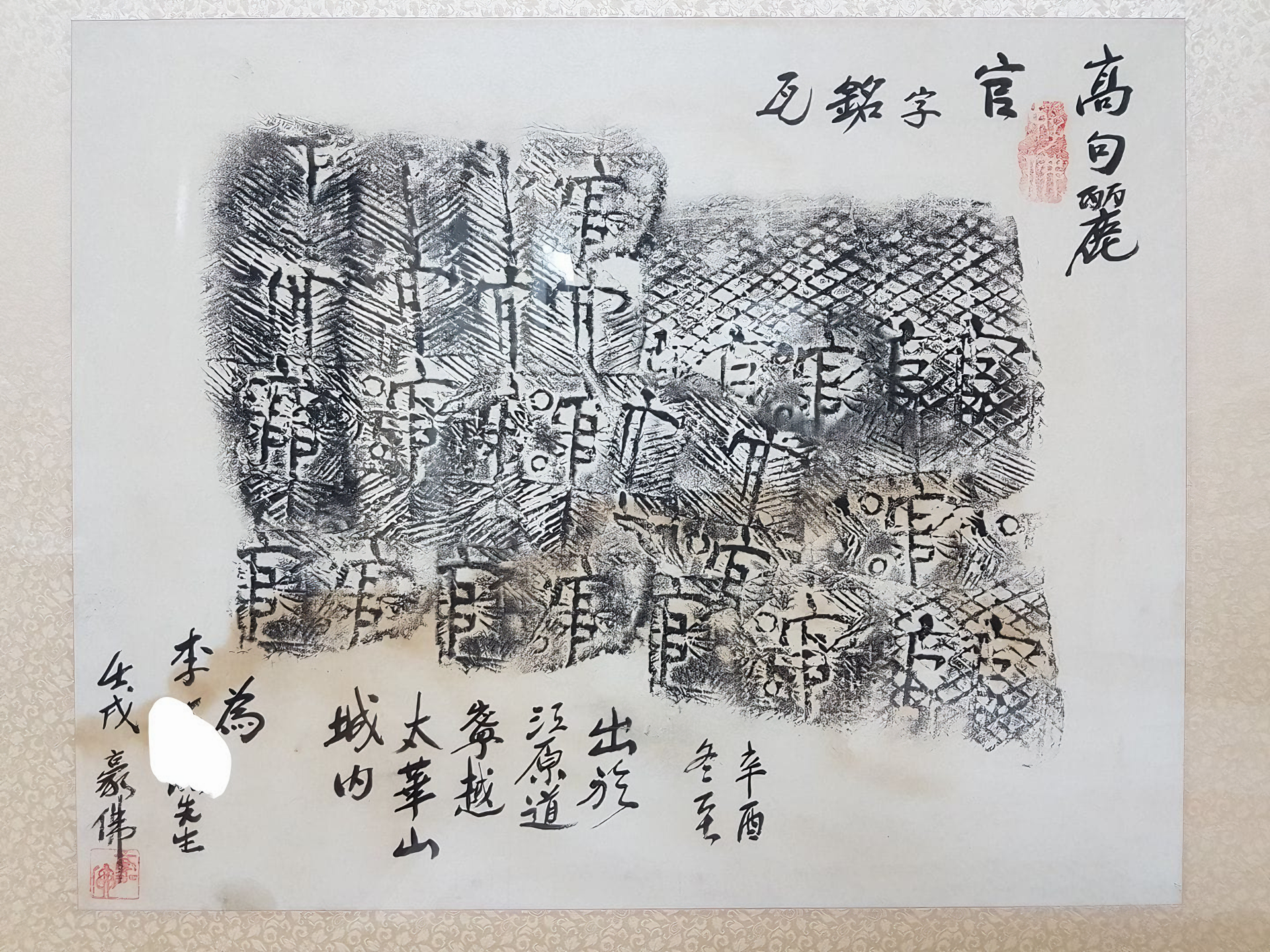 그곳 태화산이라는 산에 삼국시대 산성이 있었는데, 답사 중이셨는지 발굴 중이셨는지, 거기서 '벼슬 관'자 명문이 든 수키와 하나를 구하셨다.