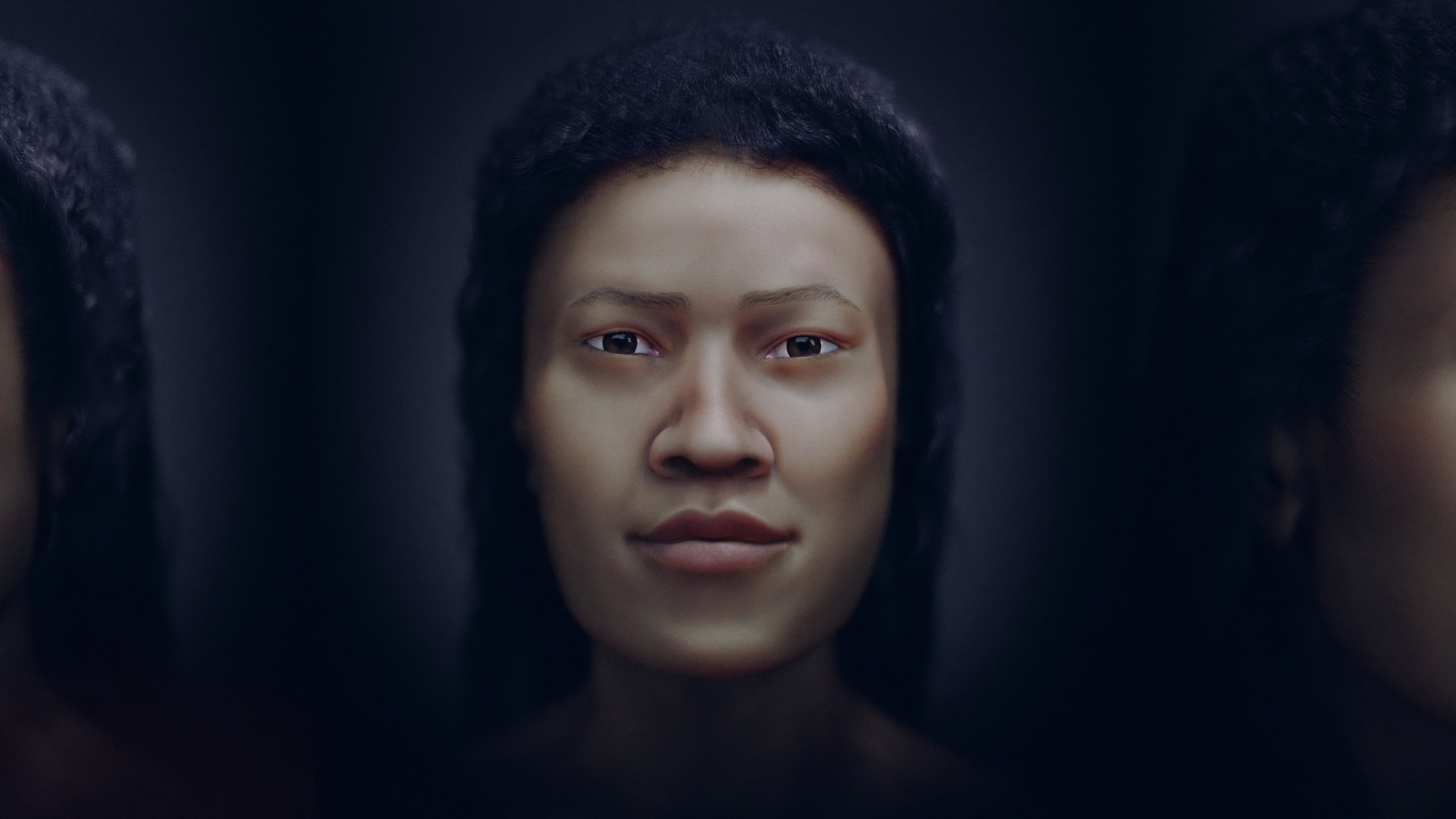 한 과학 일러스트레이터는 여성 두개골 일부와 장신구(특히 다이아뎀[은관])를 사용해 여성 머리 크기를 측정하는 디지털 복원도를 제작했다.